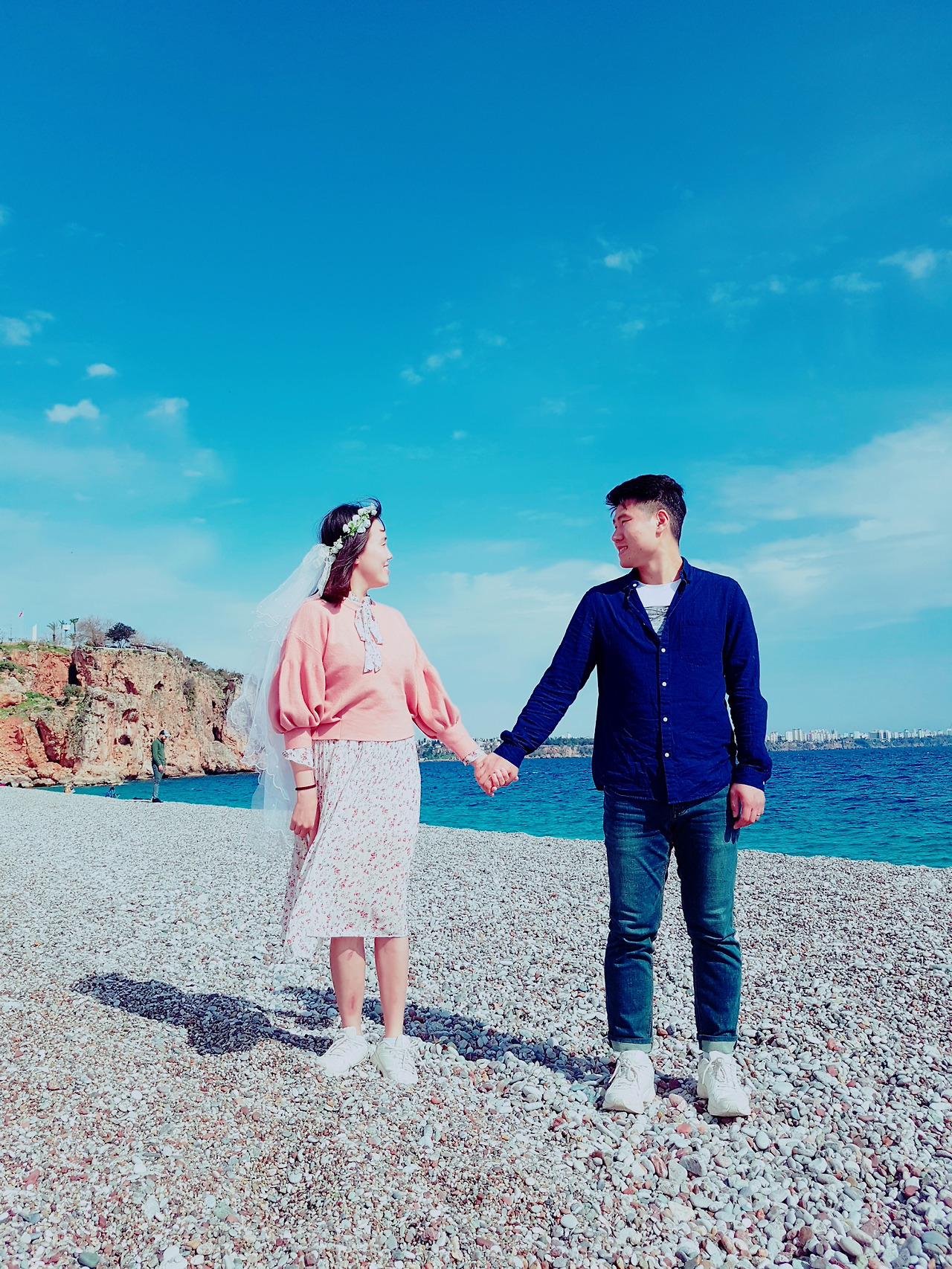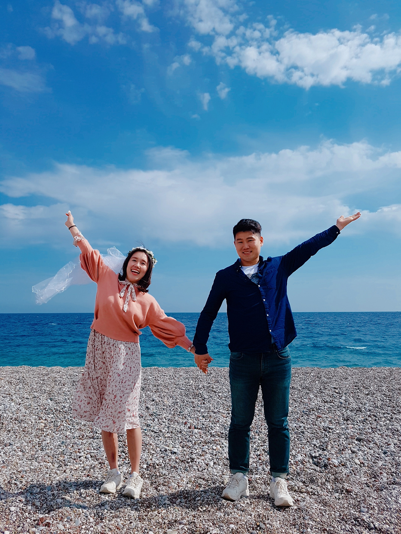 결혼 후 맞이하는 첫 기념일. 뭐라도 해야겠다는 생각에 마음이 분주해졌다. 가져온 옷들 중 그나마 이쁜 옷을 꺼내어 입고, 언젠가 기념사진을 찍겠다며 챙겨 온 카메라와 삼각대, 면사포를 집어 들었다. 코로나로 모든 가게가 셧다운 된 상황이라 갈 수 있는 곳은 없었지만, 둘이 바닷가라도 걷자며 자고 있는 남편의 손을 잡아 일으켰다.