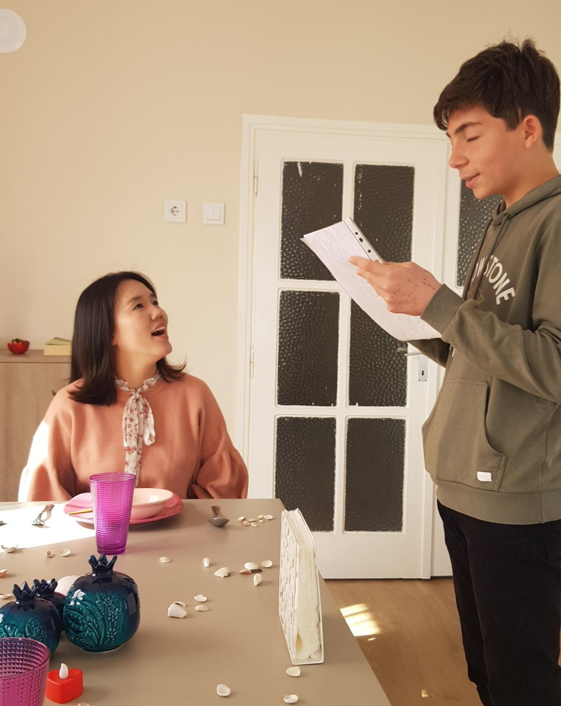 한참 만에 집으로 돌아오니 생각지도 못한 깜짝 이벤트가 마련되어 있었다. Zeliha언니와 Arda가 아무 데도 가지 못하는 우리를 위해 거실에 직접 레스토랑을 오픈한 것이다. Arda는 제 손으로 꾸민 테이블에 우리를 앉히고서는 직접 만든 메뉴판을 가져와 오늘의 코스를 설명했다.