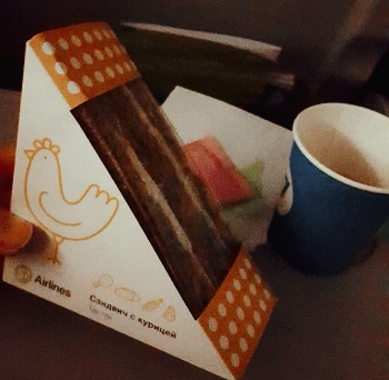 여우곡절 끝에 무사히 블라디보스토크로 가는 S7항공기에 탑승했다. 두세 시간 거리이지만 간단한 기내식을 준다는 말에 치킨 샌드위치를 골랐으나 역시 소문대로 신기할 정도로 맛이 없었다.