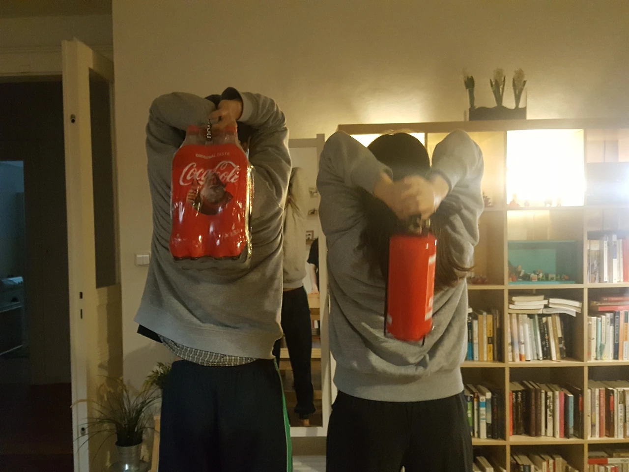 그리하여 우리는 소화기와 페트콜라를 들쳐 매고 상체 운동을 시작했다.