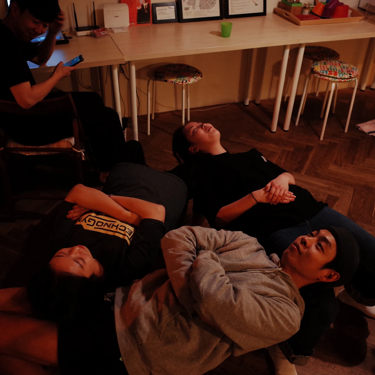 이 사진은 거실에서 함께하던 손님이 '이런 스태프들은 처음 본다'며 끊임없이 폭소하며 찍어주신 사진이다.