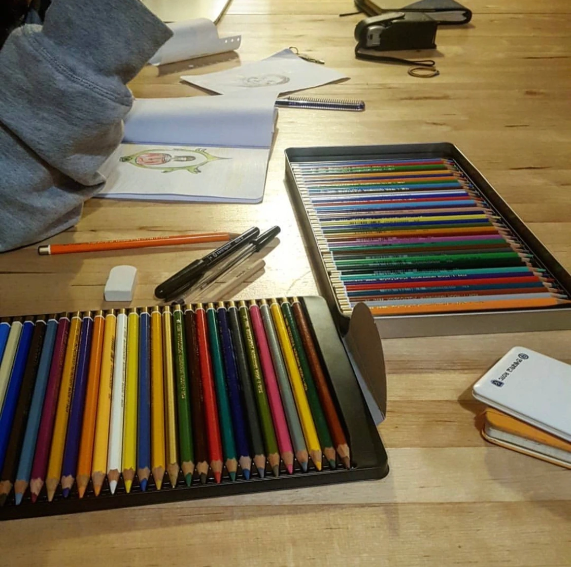 테이블에는 심심한 먹깨비 두 명과, 신재오빠가 함께 앉아있다. 테이블 위에 가득한 도화지와 색연필은 현우오빠의 것만은 아니고, 홍비가 야심 차게 꺼내놓은 도구들이다.
