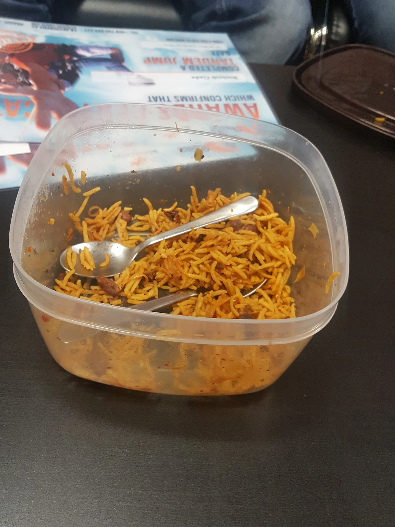 인도인 친구가 가방에서 주섬주섬 도시락과 과자들을 꺼내 테이블에 올려놓았다.