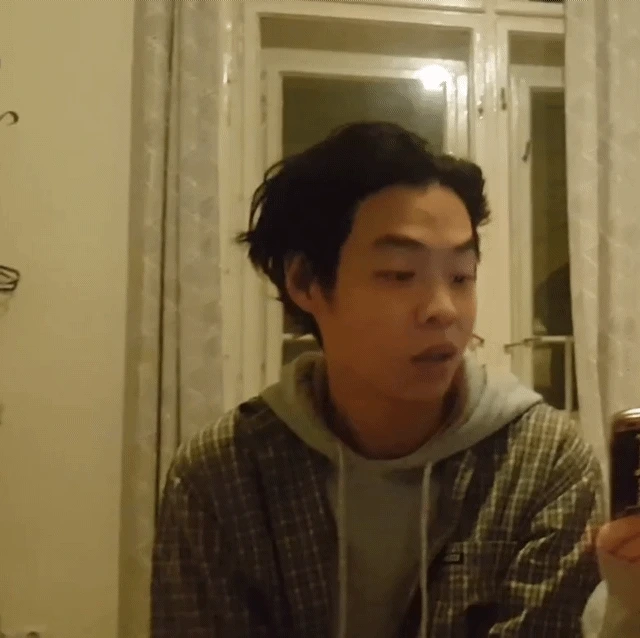 현우의 프라하 친구인 산슬과 이보가 민박집에 놀러 왔다. 둘은 거실 테이블 맨 끝에 나란히 앉았다.