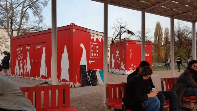 공원 한편에 빨간 컨테이너 박스가 마치 크리스마트 트리 앞에 놓인 빨간 선물 상자처럼 모여있었다. 혜성 언니와 나는 공원에 놓인 테이블에 자리를 잡고 앉아서 우리의 대장, 산슬언니가 위풍당당하게 카운터 박스로 걸어가 주문하는 모습을 지켜봤다.