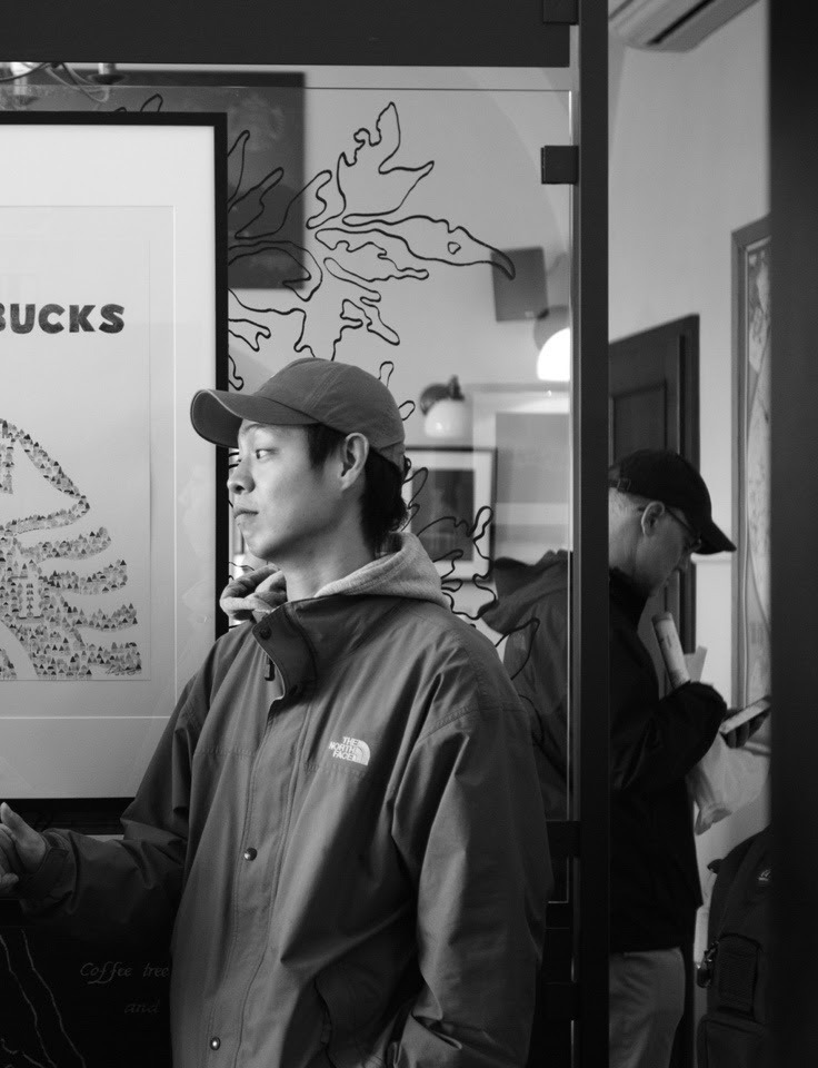 무례한 듯 자상한, 다른 사람을 사진에 또는 그림에 담기를 좋아하시는 신재오빠. 믿고 듣는 looooop 플레이 리스트와 자연스러운 흑백사진 그리고 건강한 척추 3.4번을 선물해 주셨다. 나마스때.