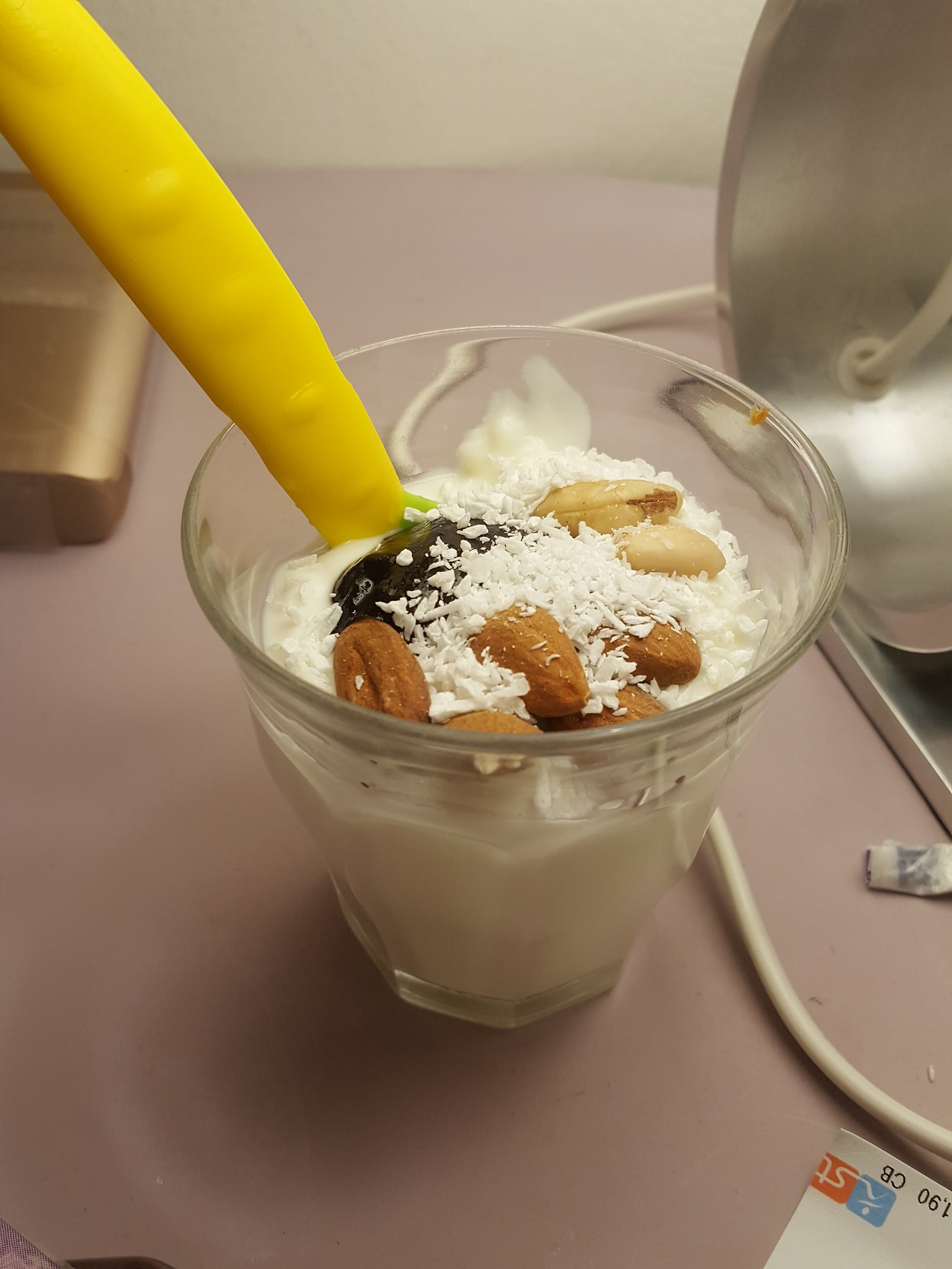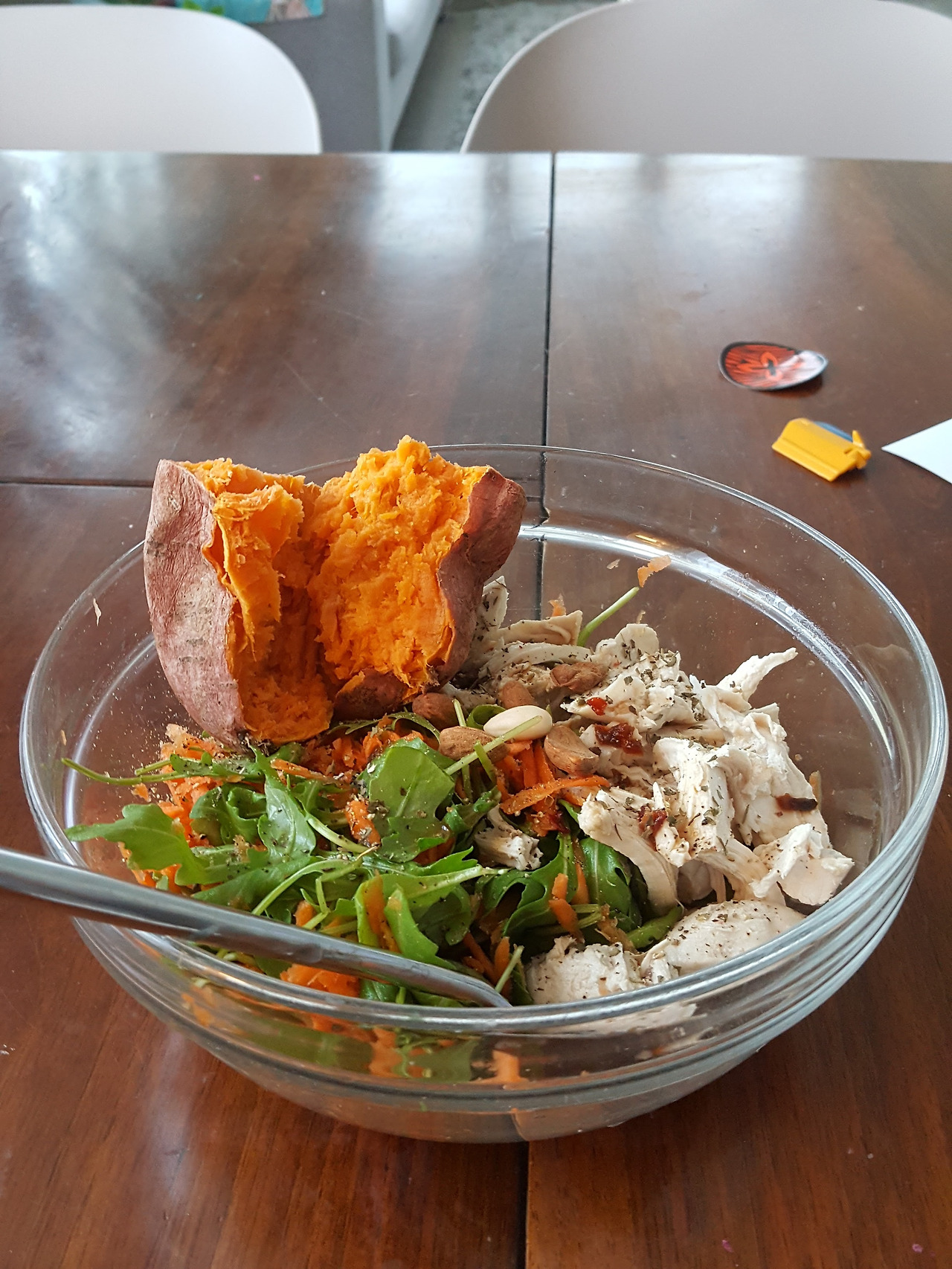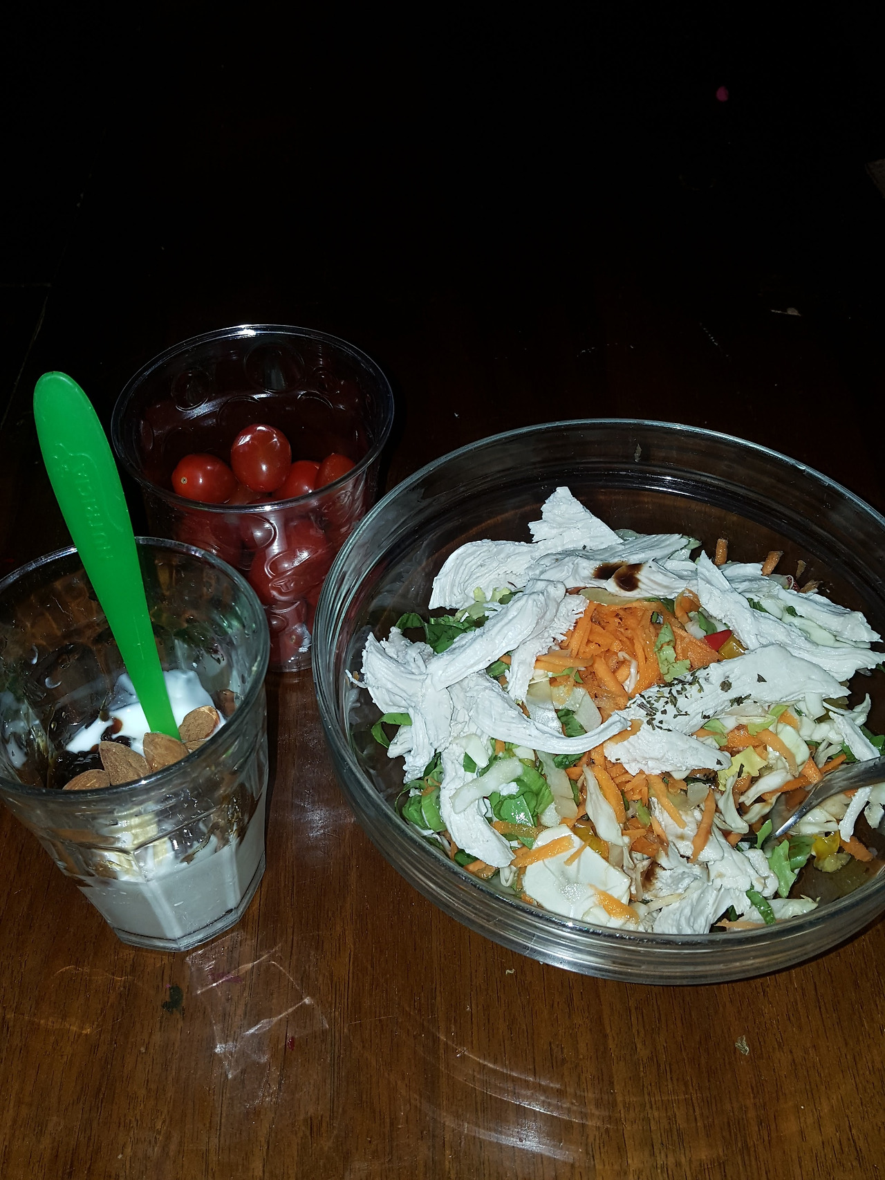 * 느지막이 센느집을 나서기 전, 닭가슴살 샐러드 한 바가지와 아몬드를 넣은 요거트