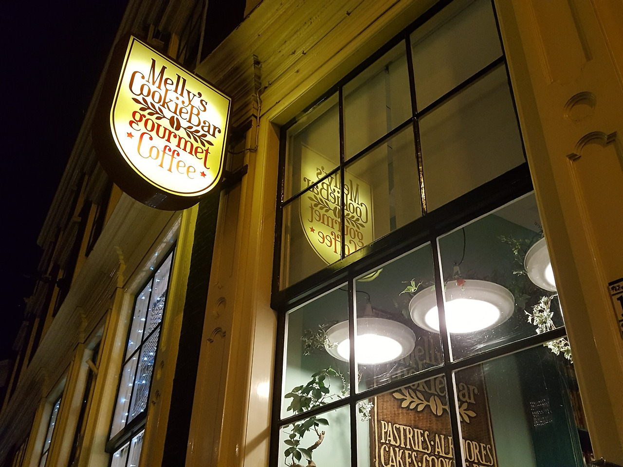 멜리는 선반에서 갓 만든 케이크와 머핀을 꺼내 보였다.