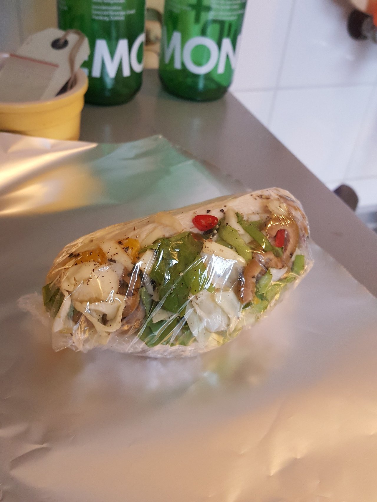 (야채를 감싼 흰 물체는 빵이 아니라 삶은 닭가슴살)