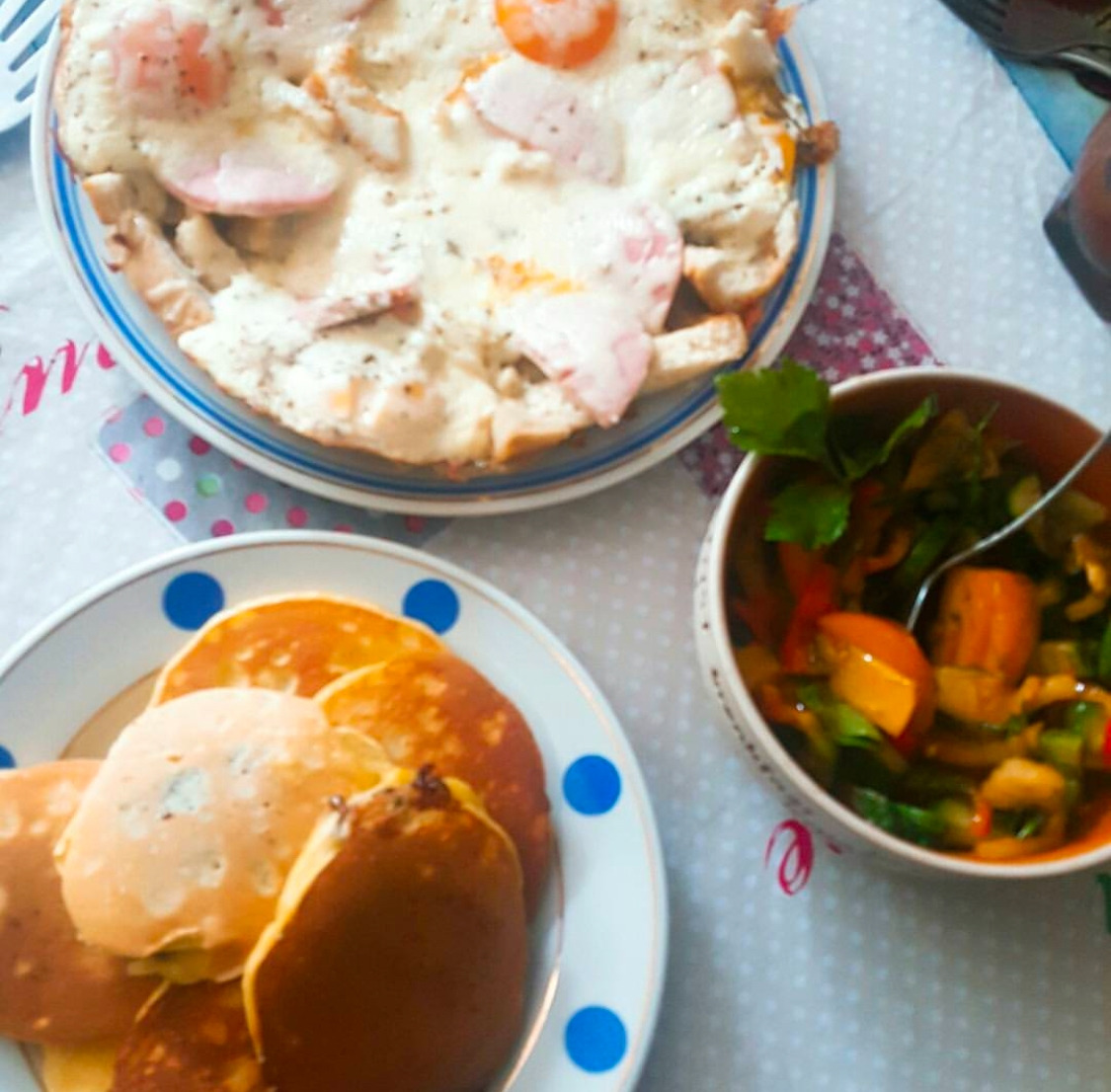 식탁에 오른 음식들이 특별히 맛있지는 않았지만, 우리는 서로 음식의 이름을 가르쳐주고 따라 하며 웃음이 가득한 저녁 시간을 보냈다.
