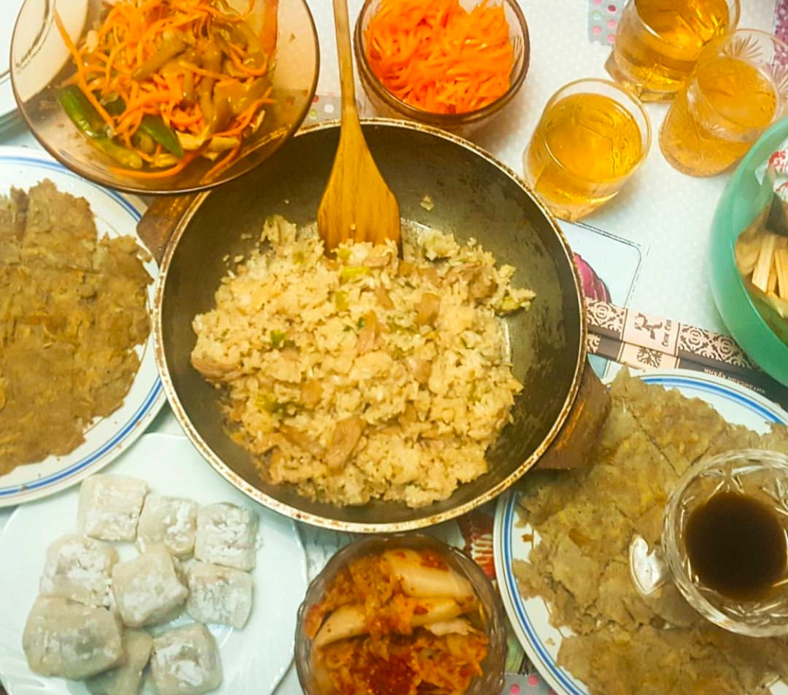 식탁 위에는 친구가 어디선가 공수해 온 배추김치, 나탈리의 당근김치(러시아에서는 한국인은 당근으로 김치를 담근다고 믿고 있었다.), 그리고 찹쌀떡이 올라왔다.