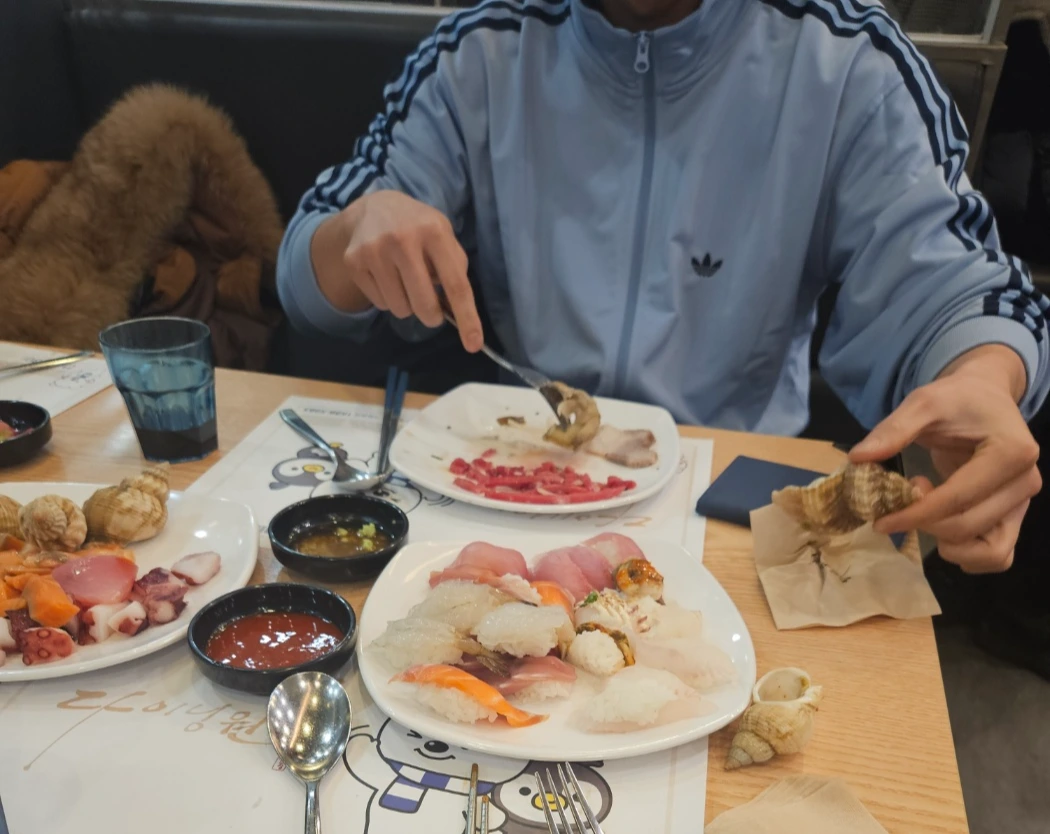 새해부터 뭐 하냐 물으니 가족들과 뷔페에 왔다며 음식 사진을 보내는 W.
