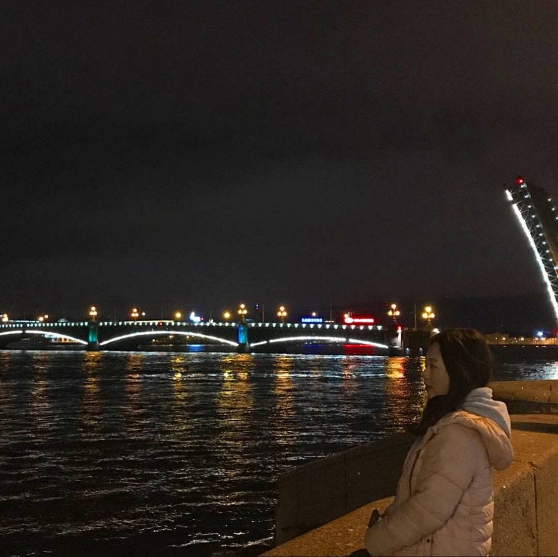 밤산책을 하며 네바강과 활짝 열린 도개교,