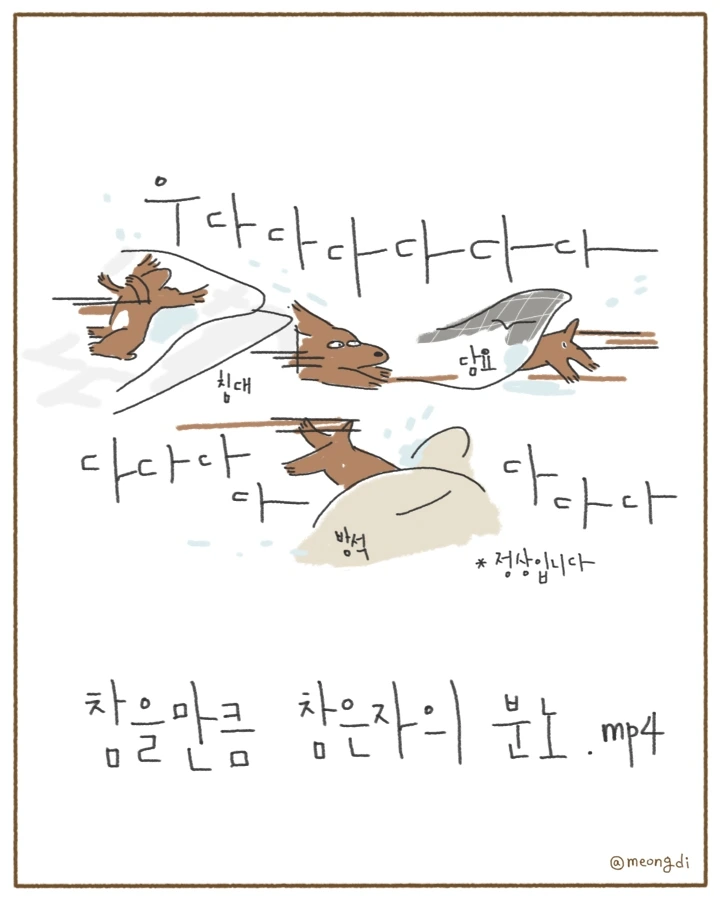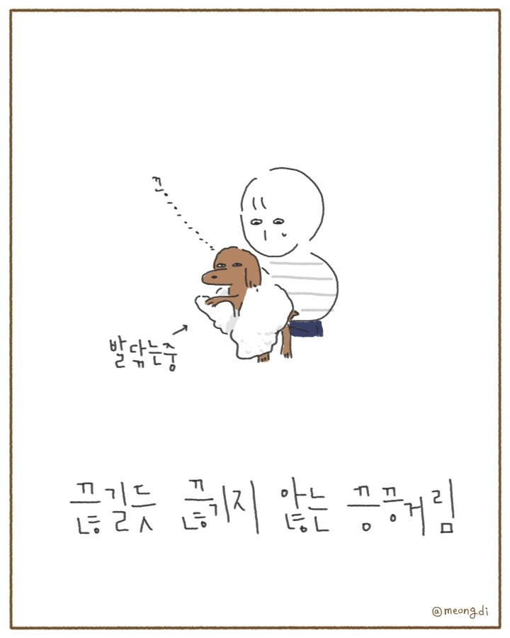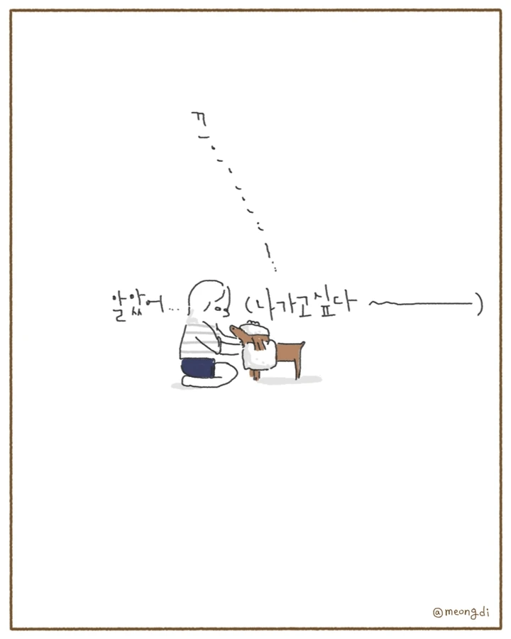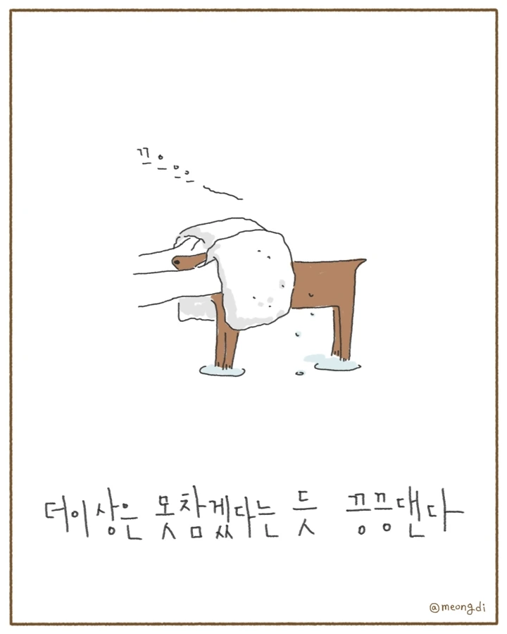 본업은 그래픽 디자이너. 취미로 그림을 그려요. 갈색푸들 키니와 함께하는 일상 <키니일기> 연재중. instagram @meongdi