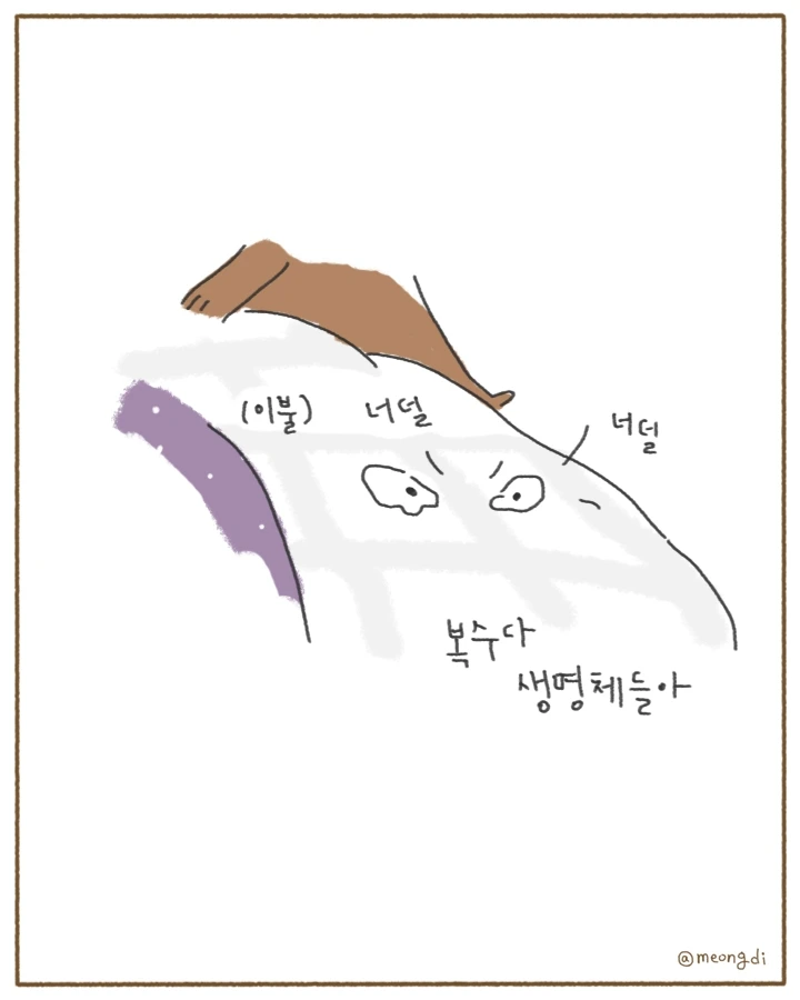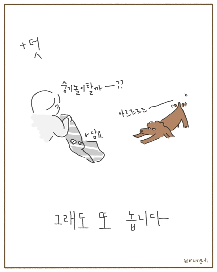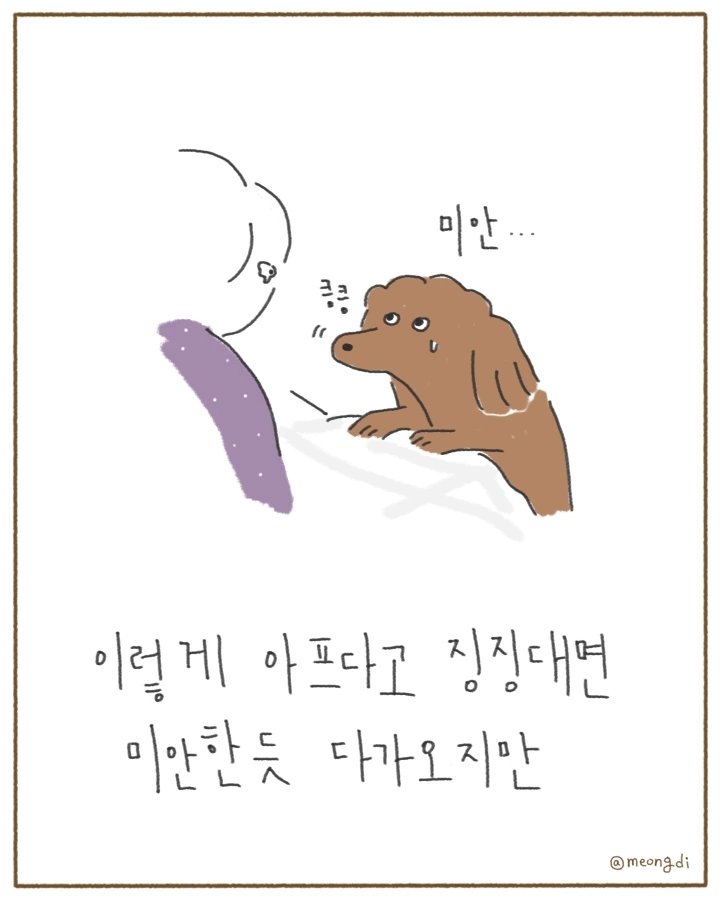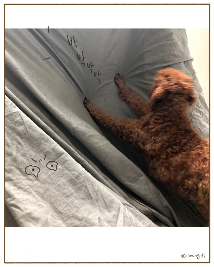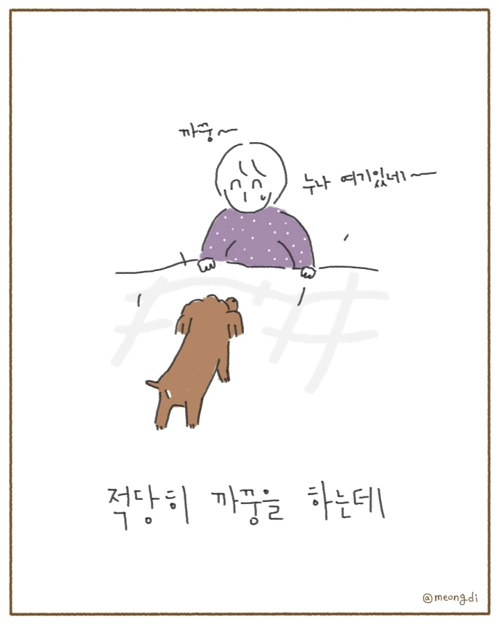 본업은 그래픽 디자이너. 취미로 그림을 그려요. 갈색푸들 키니와 함께하는 일상 <키니일기> 연재중. instagram @meongdi