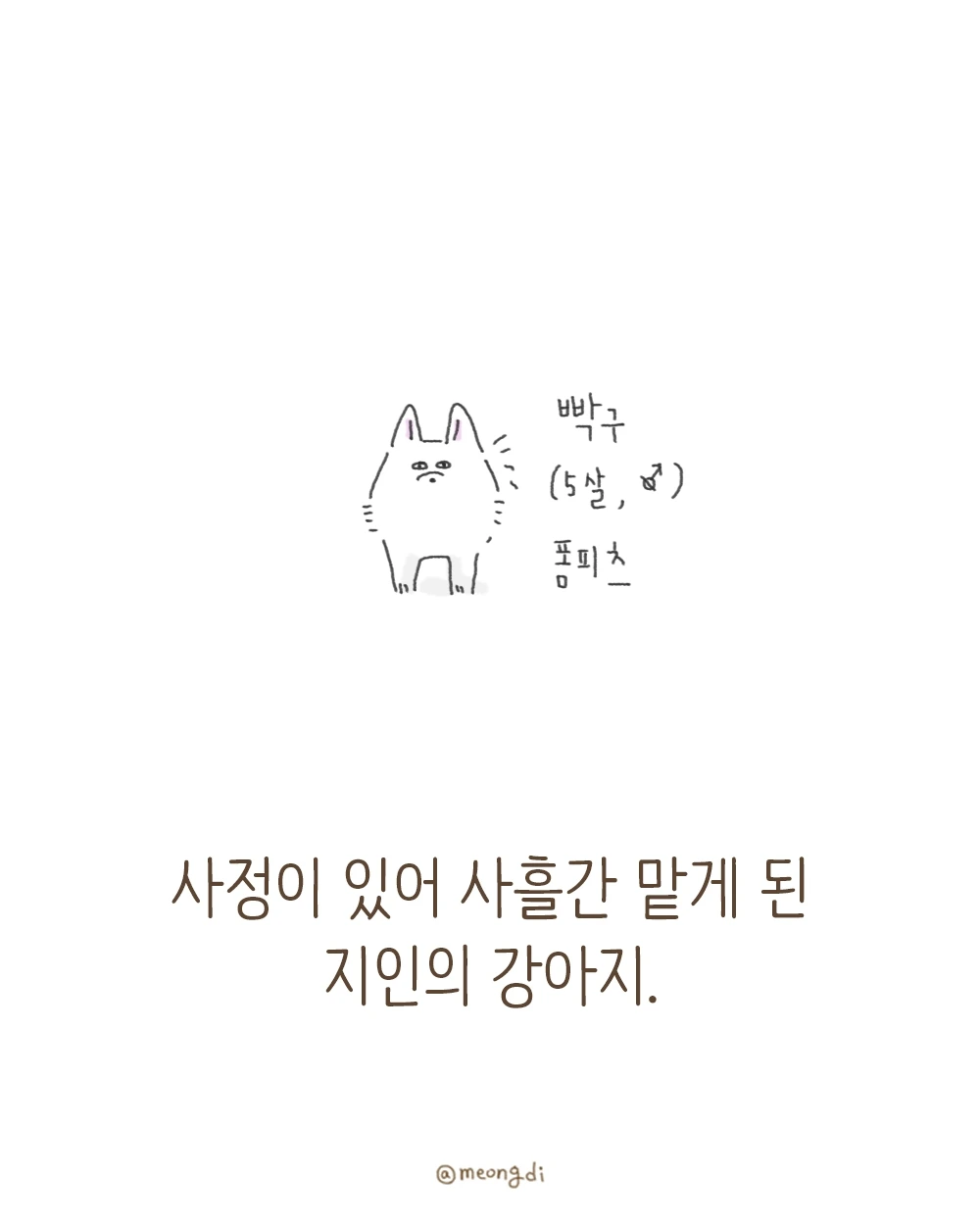 본업은 그래픽 디자이너. 취미로 그림을 그려요. 갈색푸들 키니와 함께하는 일상 <키니일기> 연재중. instagram @meongdi