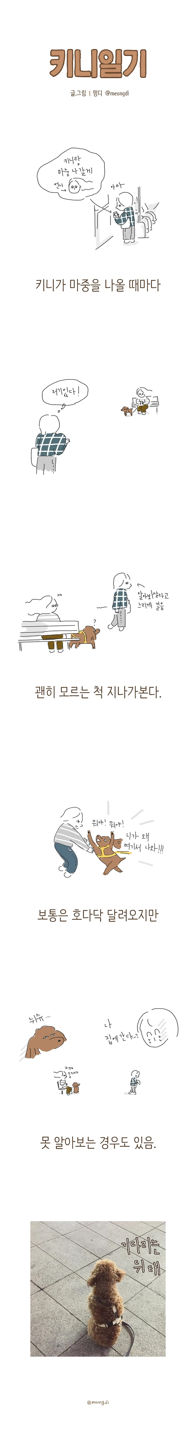 본업은 그래픽 디자이너. 취미로 그림을 그려요. 갈색푸들 키니와 함께하는 일상 <키니일기> 연재중. instagram @meongdi
