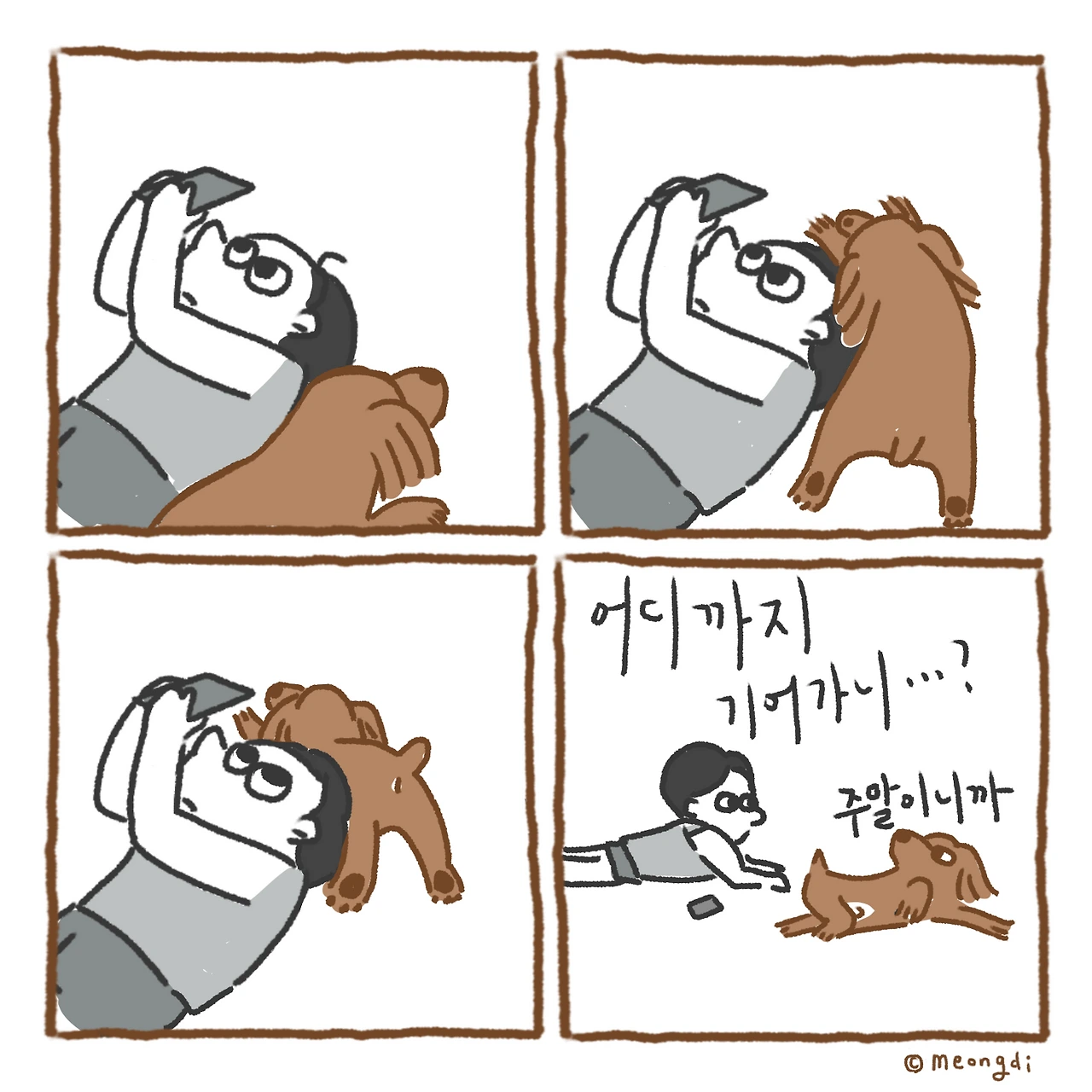 본업은 그래픽 디자이너. 취미로 그림을 그려요. 갈색푸들 키니와 함께하는 일상 <키니일기> 연재중. instagram @meongdi