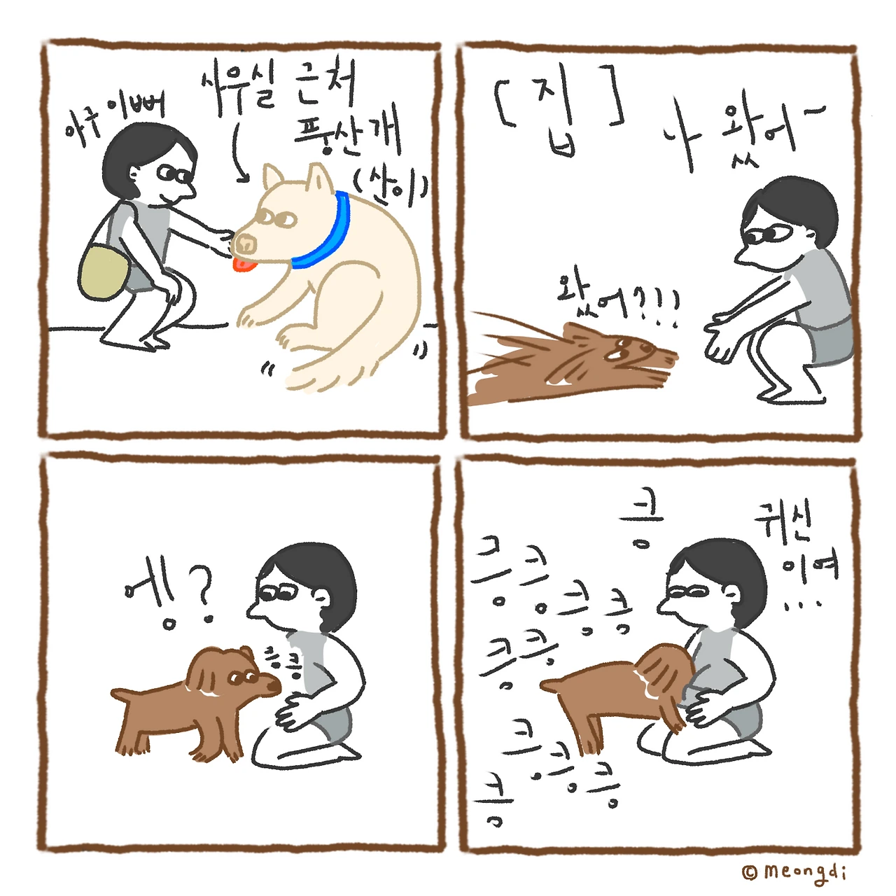 본업은 그래픽 디자이너. 취미로 그림을 그려요. 갈색푸들 키니와 함께하는 일상 <키니일기> 연재중. instagram @meongdi