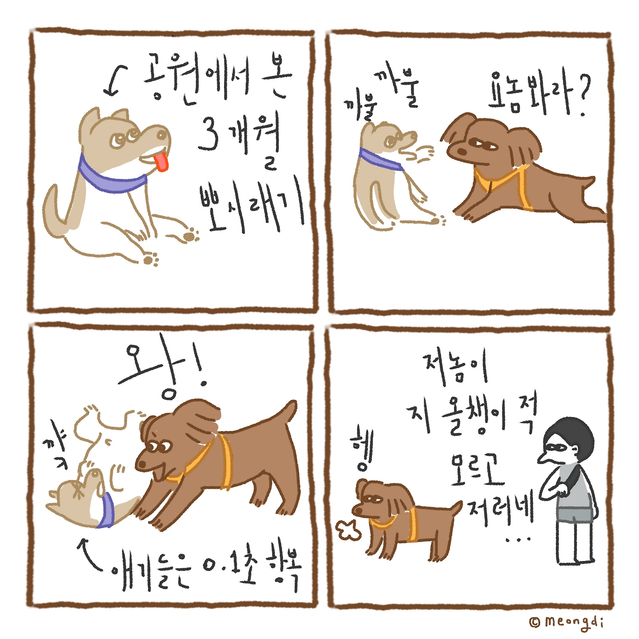 본업은 그래픽 디자이너. 취미로 그림을 그려요. 갈색푸들 키니와 함께하는 일상 <키니일기> 연재중. instagram @meongdi
