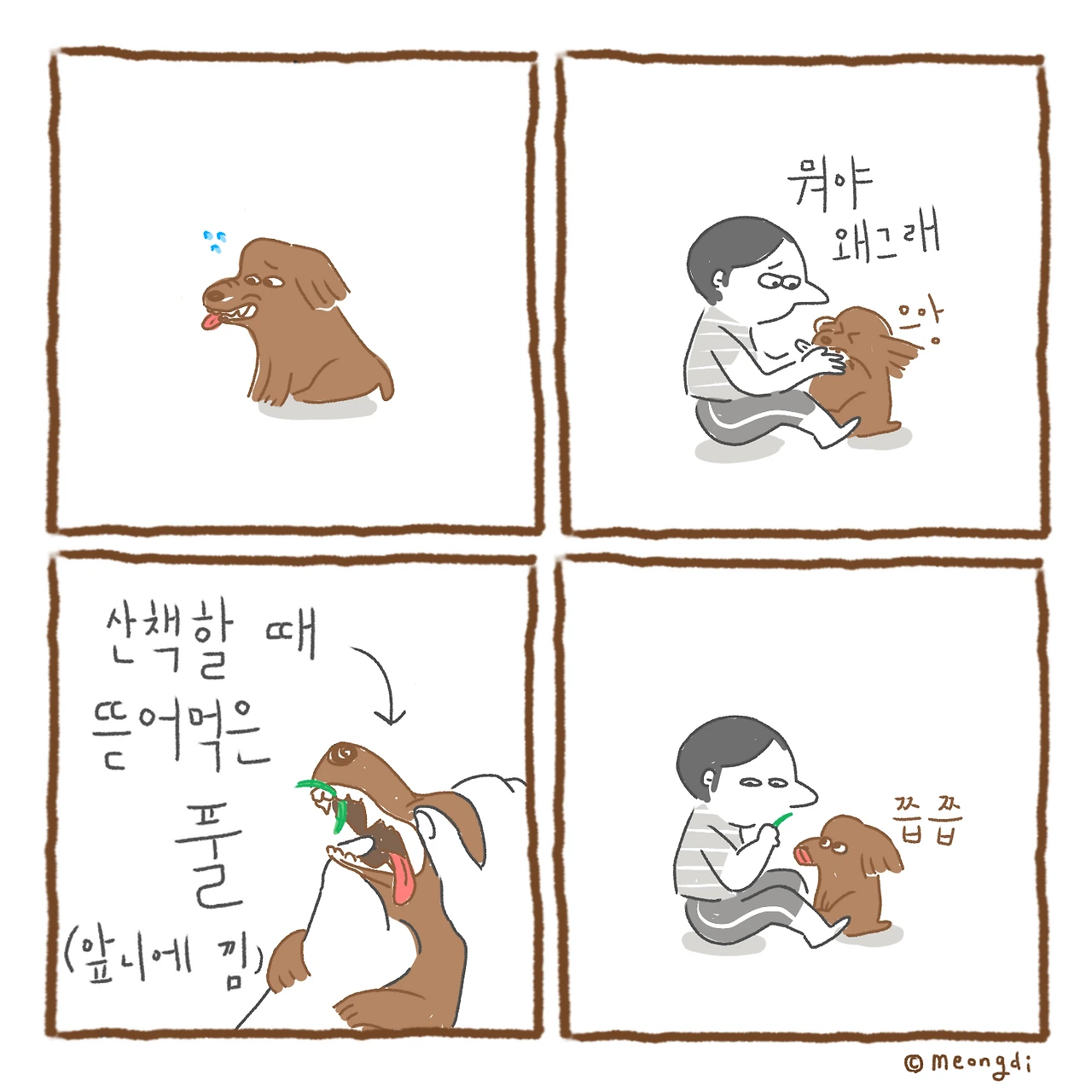 본업은 그래픽 디자이너. 취미로 그림을 그려요. 갈색푸들 키니와 함께하는 일상 <키니일기> 연재중. instagram @meongdi