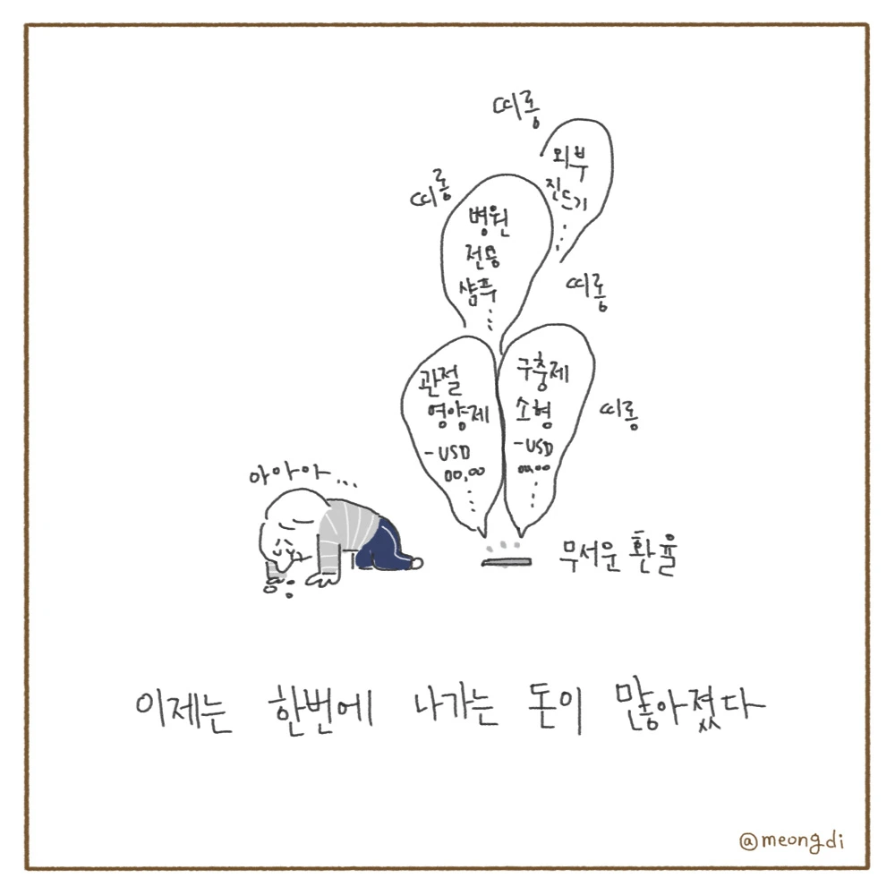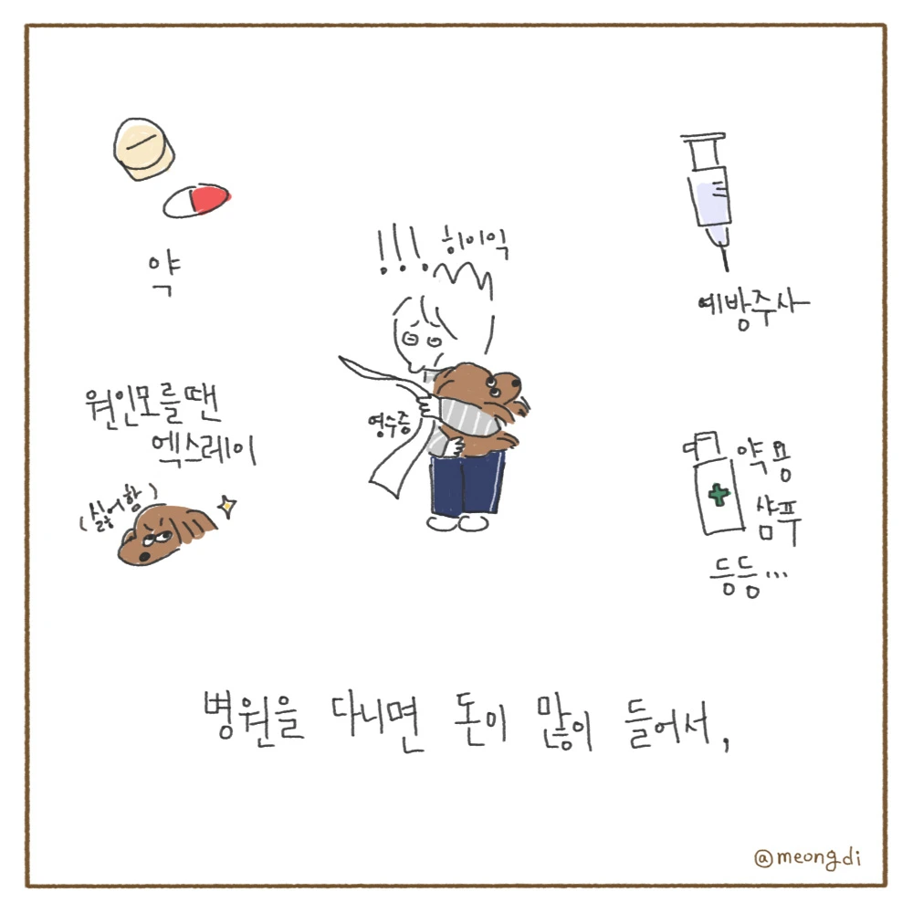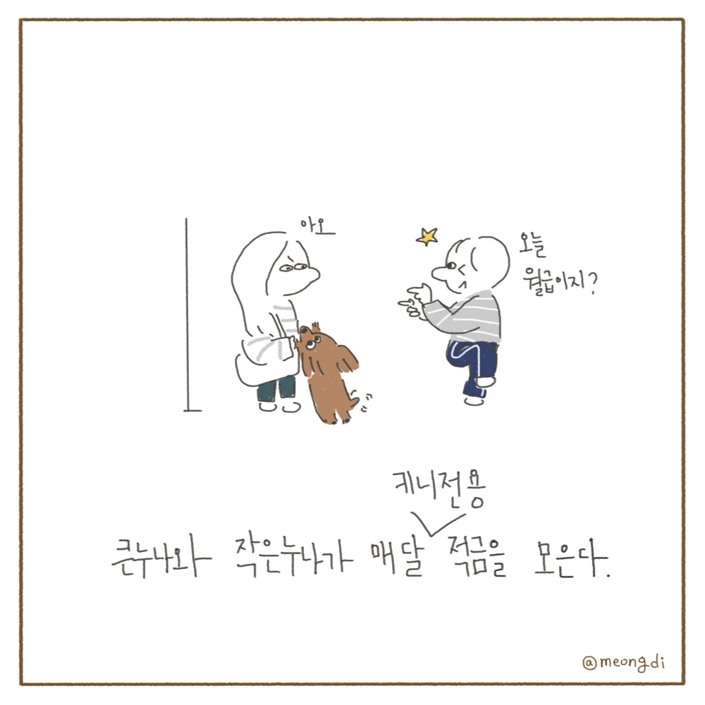 본업은 그래픽 디자이너. 취미로 그림을 그려요. 갈색푸들 키니와 함께하는 일상 <키니일기> 연재중. instagram @meongdi