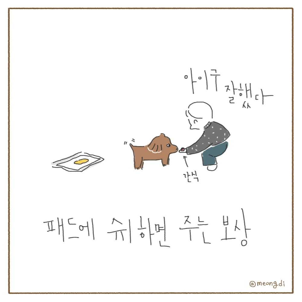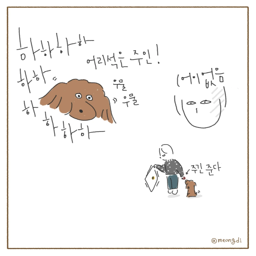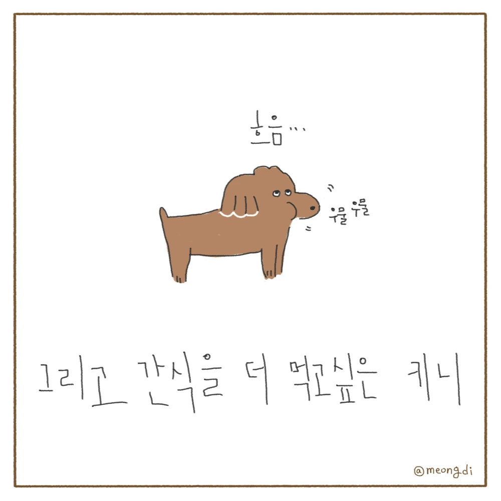 본업은 그래픽 디자이너. 취미로 그림을 그려요. 갈색푸들 키니와 함께하는 일상 <키니일기> 연재중. instagram @meongdi