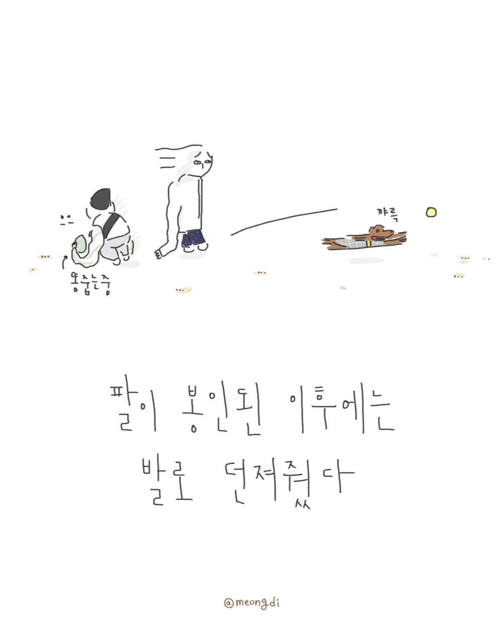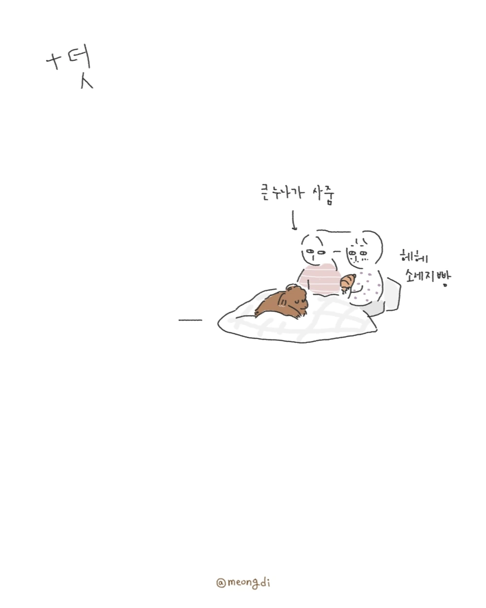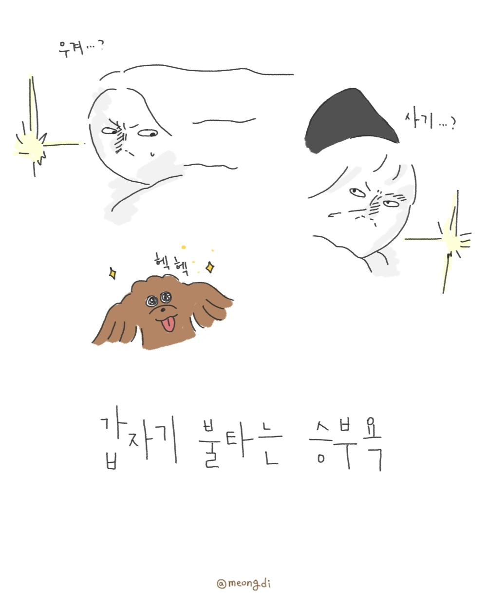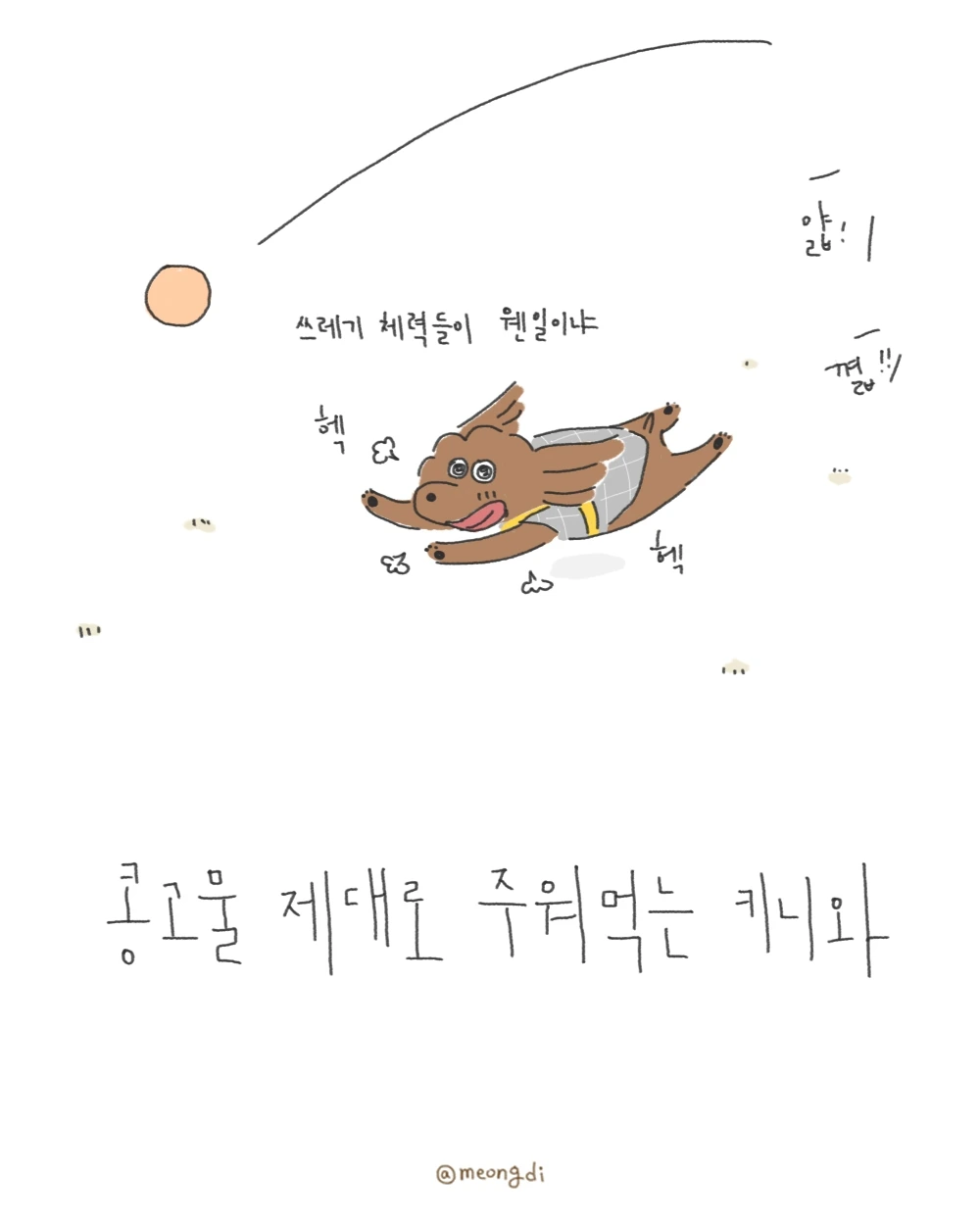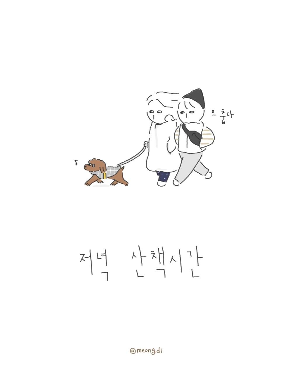 본업은 그래픽 디자이너. 취미로 그림을 그려요. 갈색푸들 키니와 함께하는 일상 <키니일기> 연재중. instagram @meongdi
