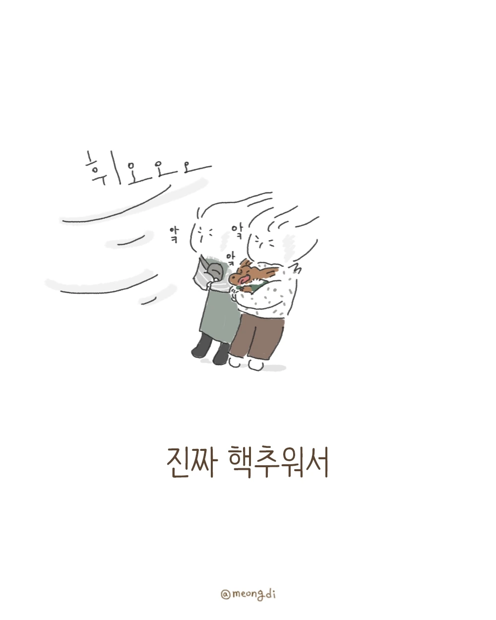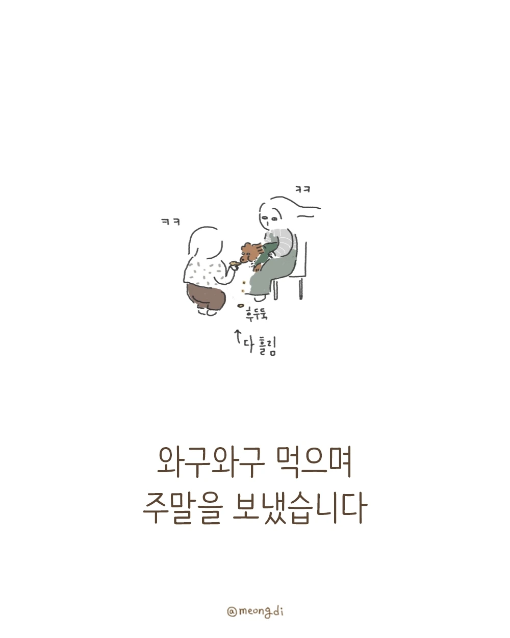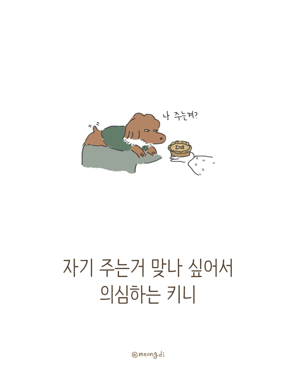 본업은 그래픽 디자이너. 취미로 그림을 그려요. 갈색푸들 키니와 함께하는 일상 <키니일기> 연재중. instagram @meongdi
