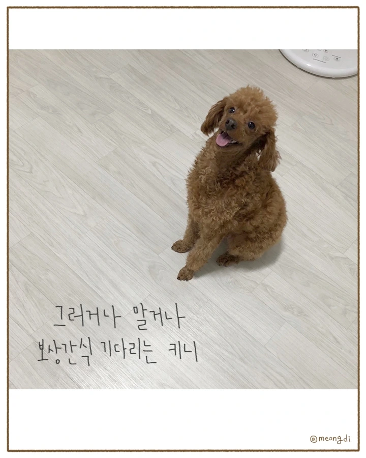 본업은 그래픽 디자이너. 취미로 그림을 그려요. 갈색푸들 키니와 함께하는 일상 <키니일기> 연재중. instagram @meongdi