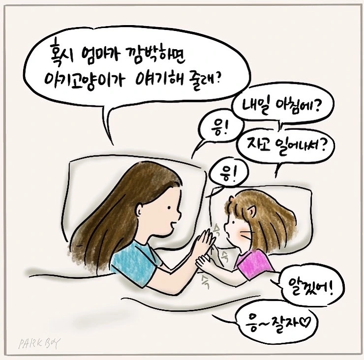 자신을 아기고양이라고 하는 6살 딸과의 일상을 그림으로 기록하고 있습니다. 수많은 일상을 그림으로 가득 채워 아이가 컸을 때 함께 보면서 웃고, 얘기하고 싶어요.