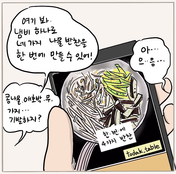냄비 하나에 나물 반찬 여러 개를 만들 수 있는 기발한 방법은 인스타그램 @todak_table 님의 게시물에서 확인하실 수 있어요!