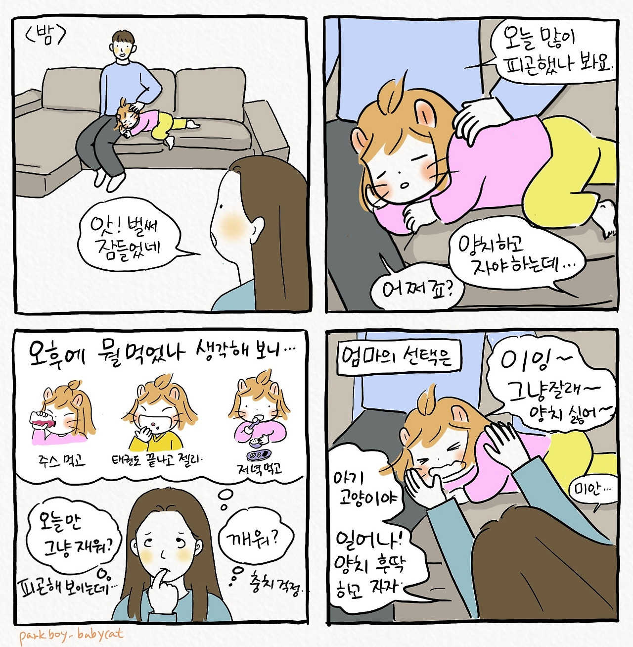 자신을 아기고양이라고 하는 6살 딸과의 일상을 그림으로 기록하고 있습니다. 수많은 일상을 그림으로 가득 채워 아이가 컸을 때 함께 보면서 웃고, 얘기하고 싶어요.