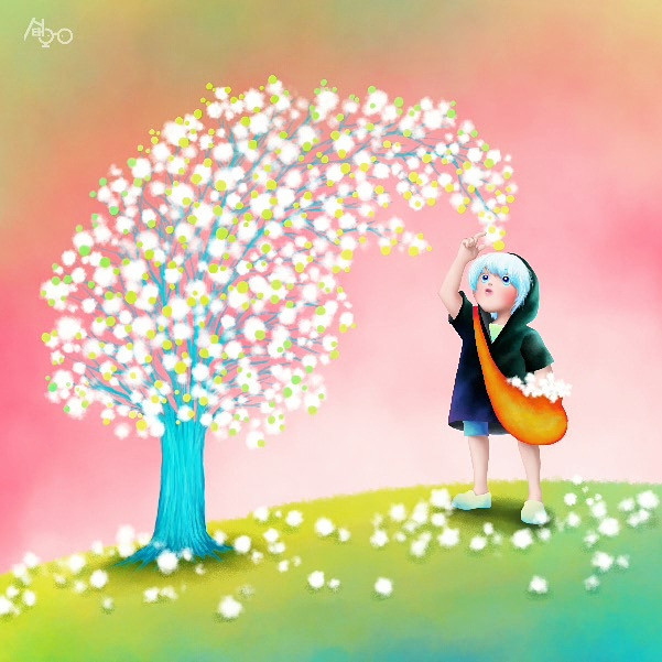 아직 작은 구름열매들을 가방 가득 채웠습니다.