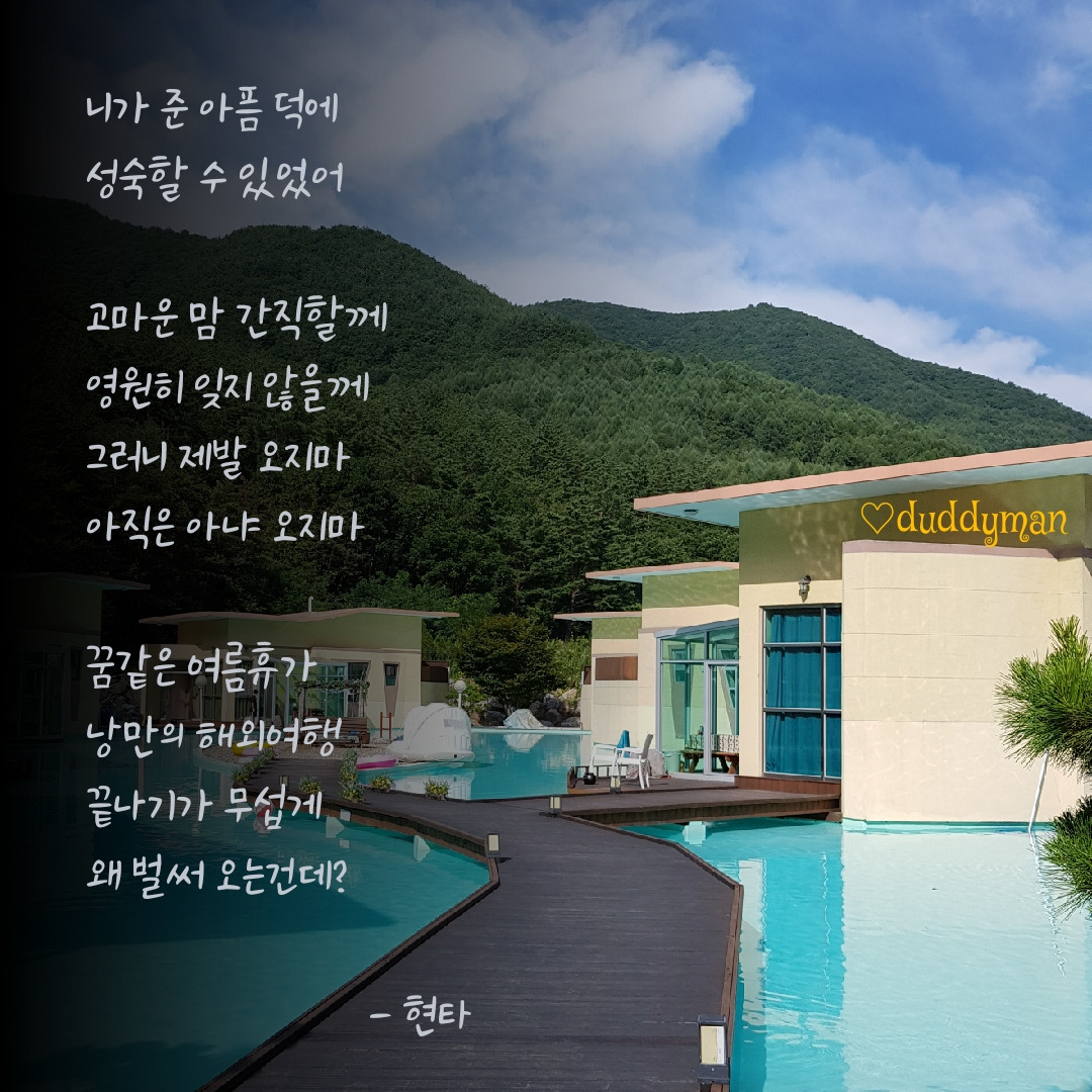 철이 든다는 것은 어쩌면 '나'를 잃어가는 과정인 것 같다. 좋은 의미로 보면 이타적이 되는 것이다. 사회로부터 주어진 나의 역할에 충실하고자 하는 발버둥..... 이젠 조금 더디게 가고 싶다. 철들기를 늦추고 싶다.