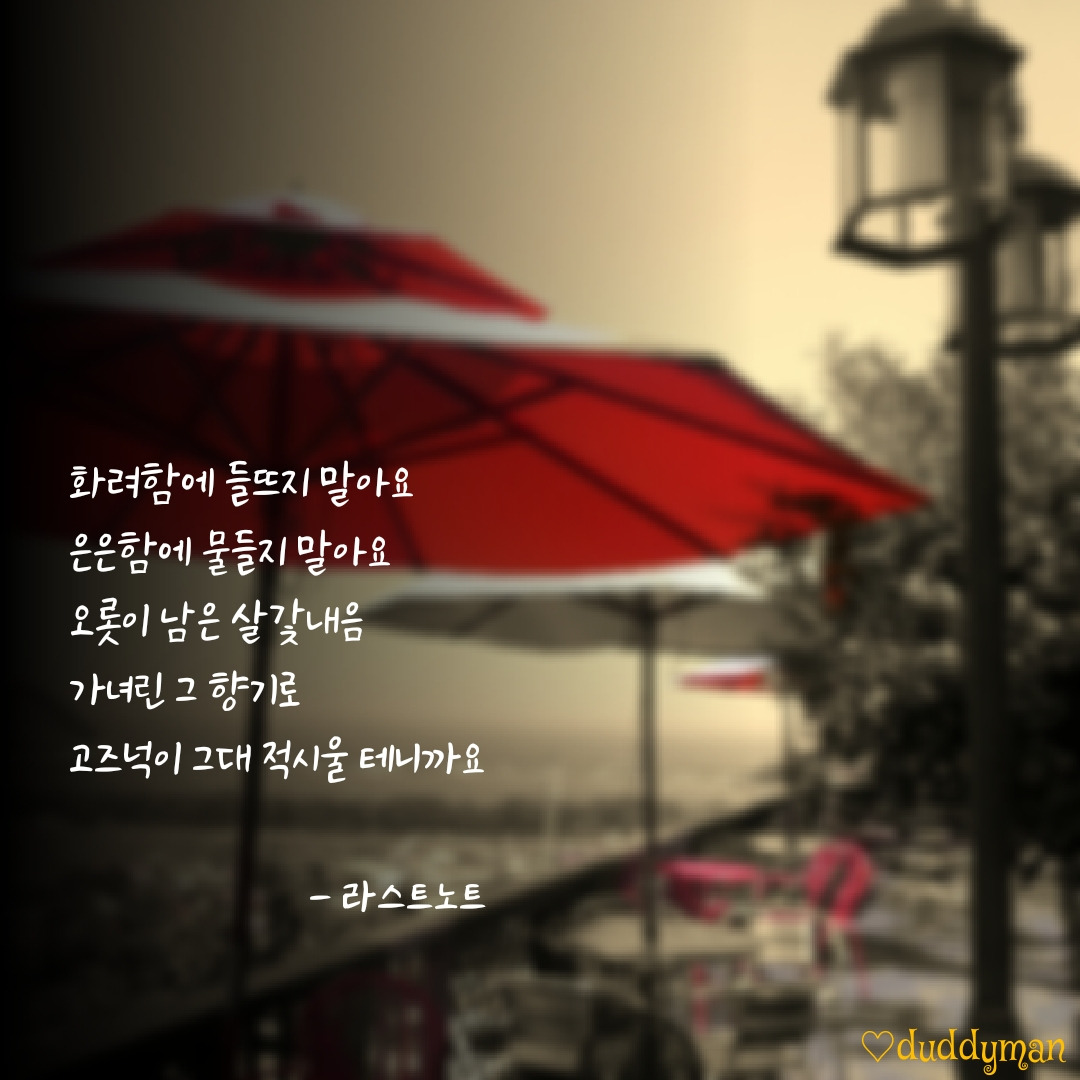 한 걸음 다가서면 부대끼는 사람이 있고 세월을 겪을수록 매력으로 다가오는 사람이 있다. 살다보면 내 체취와 어우러지는 잔향같은 사람이 있다.