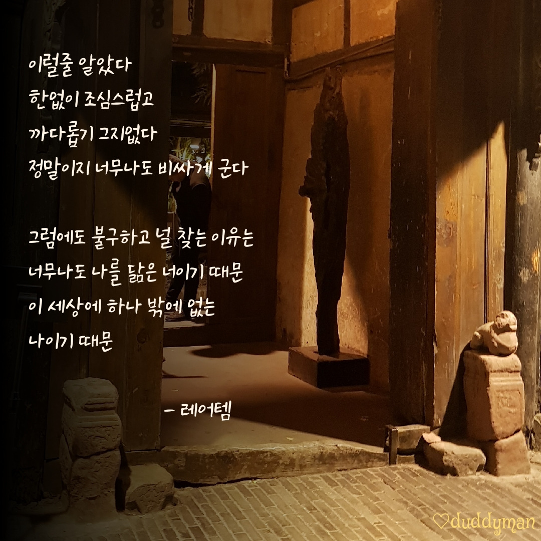 나를 사랑하는 일은 어쩌면 쉬운 듯 하면서도 어렵다. 열등감에 싸여 스스로를 채근하고 학대했던 젊은 날의 기억이 아직 생생하다. 비로소 나 자신을 사랑하게 된 때가 불과 얼마 지나지 않았음을 말해준다. 나를 사랑할 수 있을 때 남도 사랑할 수 있음을 실감하며 사는 요즘이다.