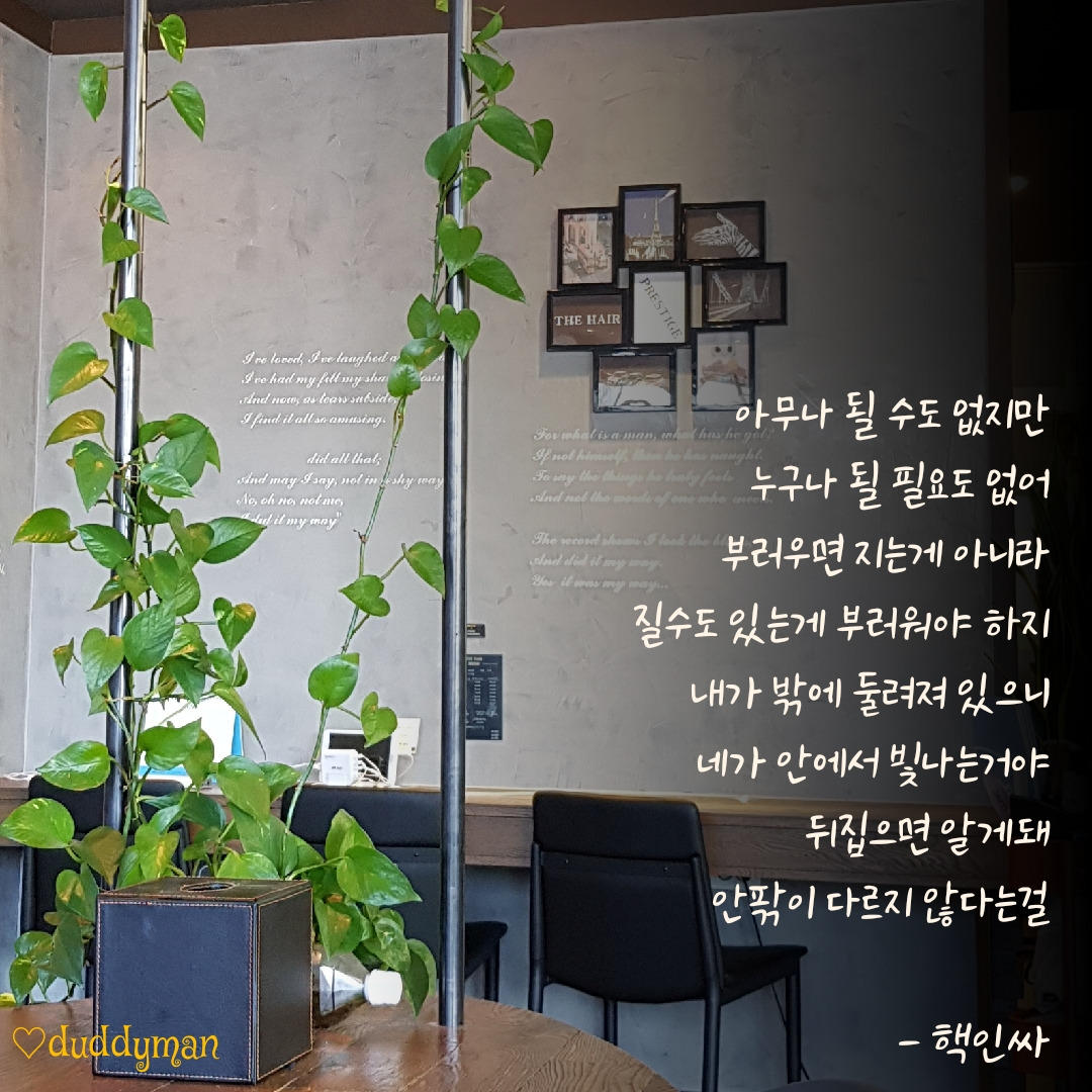 또 하나의 목표가 되지 않았으면 한다. 그냥 '나대로 사는 법'을 가르치고 배우고 인정하는 사회였으면 한다. 서로 다르지만 가치는 동등하다. 인싸든 아싸든 무슨 상관이랴. 당신은 그냥 당신이라서 예쁜 것이다.