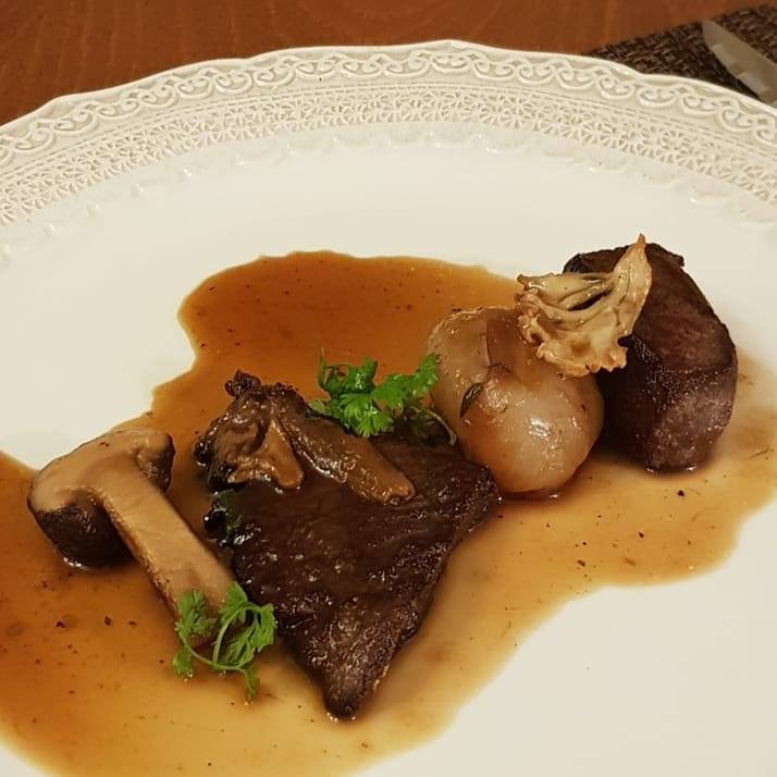 얇은 한우 1++ 알치마살은 두툼한 송화버섯과 어울린다. 그래도 메인인데 하며 씹는 맛을 아쉬워할 것을 고려했는지 두께감있는 한우 1++ 보섭살을 얇게 저민 꽃송이버섯과 매칭해 놓았다. 포르치니 스테이크소스가 너무나 매력적이다. 되직하지 않아 잘 스며들고 다른 버섯향과 어울림이 좋았다. 작은 크기의 스테이크라서 자칫 소홀할 수도 있을텐데 완벽한 시어링에 굽기도 적당해서 몇 조각의 음미 만으로도 충분히 만족스러웠다.