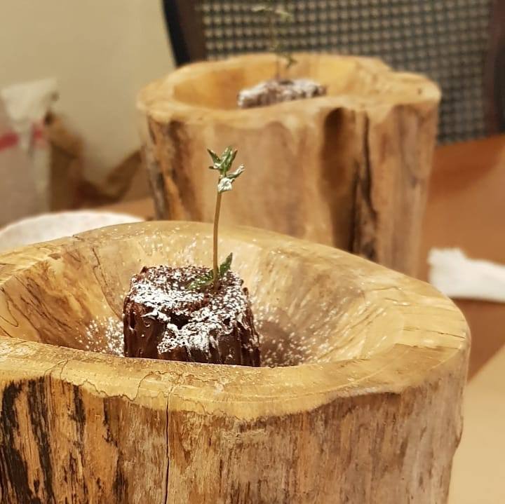 쇼꼴라케익은 고목을, 그 위에 뿌려진 슈가파우더는 세월의 흔적을, 그리고 데코로 세운 허브 한 꼭지는 새로운 시작의 탄생을 의미한 것은 아닐까 생각해 본다.