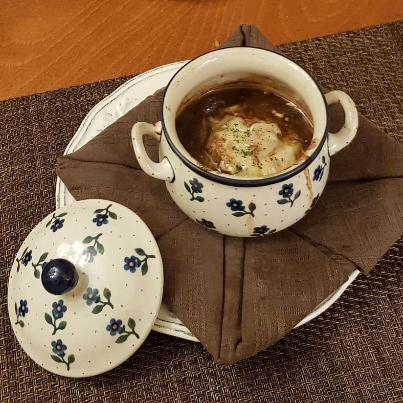 겨울에 더없이 좋은 뜨거운 어니언스프가 나왔다. 역시나 프랑스 가정식에 빠지지 않는 요리가 되겠다. 특별한 것이 있다면 스프 속에 알자스 지방의 치즈파이인 퀴시 플람베가 들어 있다는 것이다. 적당량을 함께 찍어 먹으라며 내어 준 머스터드 소스도 독특했다. 뭔가 시트러스함이 베어 있어 별도로 제조한 것인듯 싶었다. 다 먹을때 까지 식지 않는 스프는 감사함으로 다가왔다.