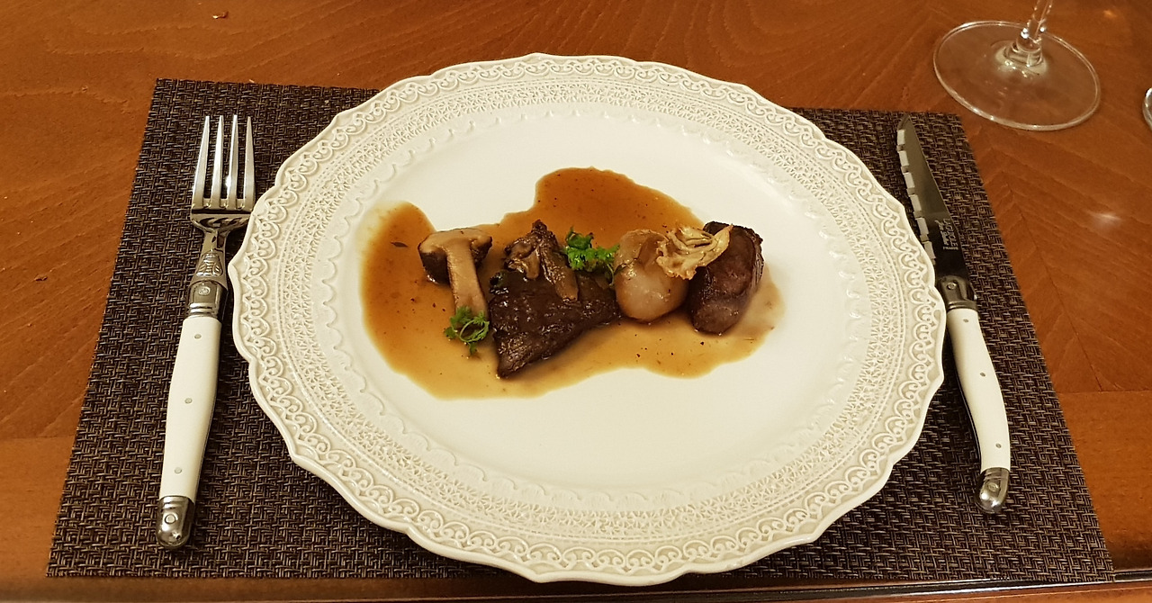 원래 메뉴에는 피노누아라고 적혀 있었지만 서브된 것은 까오흐 말벡! 메인 요리가 양고기에서 쇠고기로 바뀌었기 때문에 마리아주 와인이 변경되었다는 말씀이시다. 블랙와인이라고도 불리는 프랑스 남부 카오흐(cahors) 지방의 말벡은 오랜 숙성으로 유명하단다. 알고보니 오쎄루아라는 품종이 바로 이것이더라는ㅋㅋㅋ