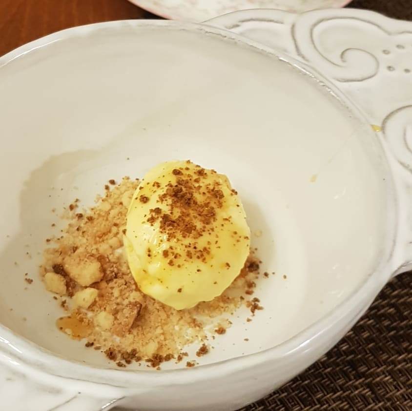 한라봉으로 만든 그라세를 소복한 쿠키 가루 위에 올리고 브랜디를 살짝 끼얹었다. 그 위에 다시 피스타치오 후레이크를 뿌렸다. 쿠키는 텁텁해서 아이스크림의 상큼함을 해친다는 나의 고정관념을 깨고 모든 것이 조화롭게 어울렸다. 셔벗의 개념이 아니었기에 훌륭한 디저트가 되었다. 멋진 식사에 강한 인상으로 방점을 찍는 기분이 들었다.