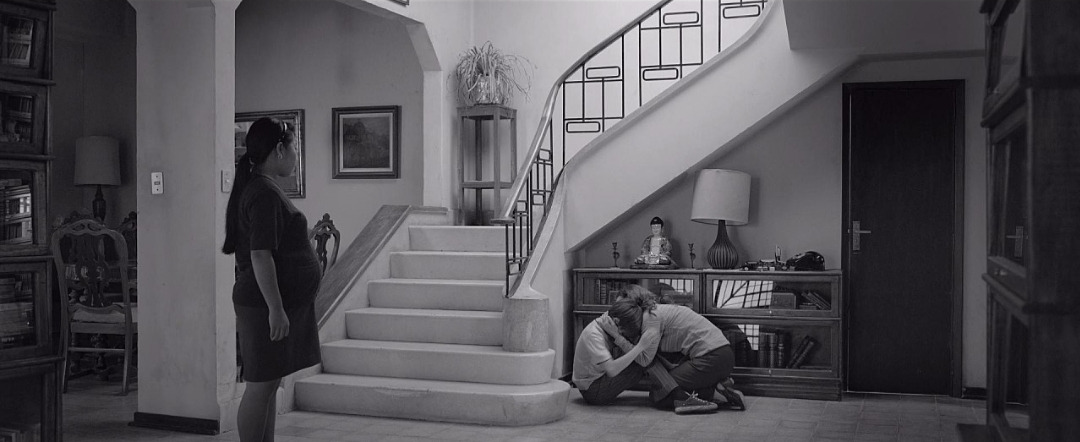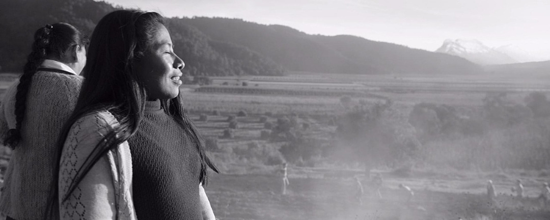 반면 여자들이 중심이 되어 등장하는 장면은 고요하고 평화롭다. 옥상에 나부끼는 빨래는 브래지어와 여자 속옷들로서 파란 하늘에 아름답게 비춰진다. 클레오와 친구 아델라와의 교제는 언제나 즐겁고 경쾌하다. 그녀들은 서로 협력하며 위로하고 의지한다. 신생아실의 간호사들은 지진이 나자 아기들을 보호하려 발버둥 치고, 할머니와 소피아의 친구 여의사는 양수가 터진 클레오를 적극적으로 돕는다. 클레오와 소피아가 함께 한 여행에서는 힐링이 일어난다. 클레오는 물에 빠진 아이들을 위해 몸을 던지고 아이들은 그의 품에 안겨 잠이 든다. 여자 아이들이 섞여 있을 때 남자아이들의 노는 모습은 자못 달라진다. 총싸움 놀이가 아니라 드넓은 평원을 거니는 것이다. 고향에 찾아 간 클레오에게 어머니는 여유와 휴식을 제공해 준다.