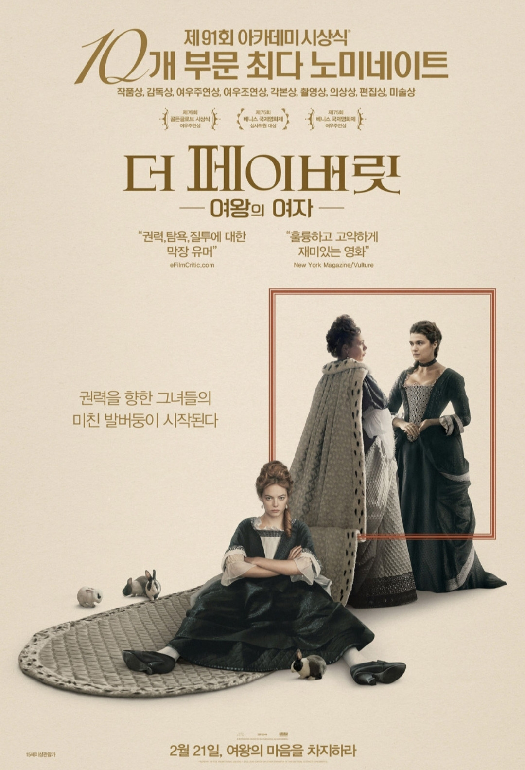 여왕의 총애를 받기 위해 - The Favorite 이 되기 위해 - 두 여자가 경쟁하는 과정이 어쩌면 주요 관전 포인트가 될 것이기 때문이다.