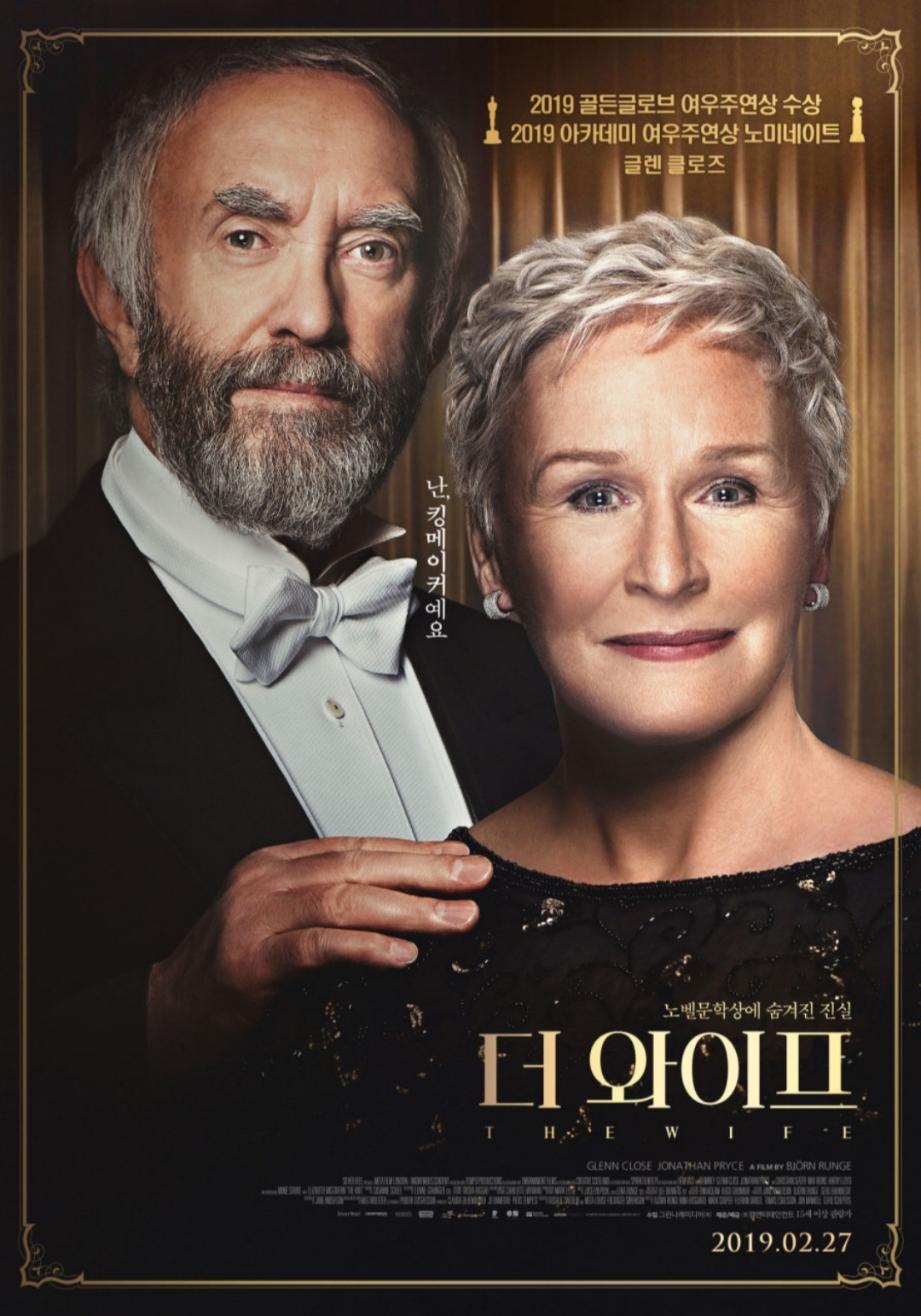 그러나 뭔가 수상한 낌새를 눈치 챈 2류 전기작가 나다니엘(크리스찬 슬레이터 분)은 노벨상 시상식장까지 두 부부를 따라다니며 비밀을 캐내려고 안간 힘을 쓴다.나다니엘의 농간 때문에 아들인 제임스에게 비밀이 탄로나고 - 물론 조안은 끝까지 부정한다 - 부부 사이에는 잠시 갈등이 생기기도 하지만 어쨌거나 노벨상 시상식은 무사히 마친다.그러나 시상식 직 후 조셉은 갑작스런 심장마비로 숨을 거두고 만다.