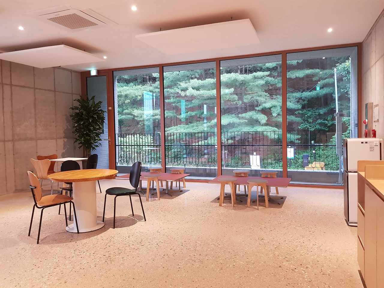 뷰가 가려진 공간은 의자가 편하게. 2층