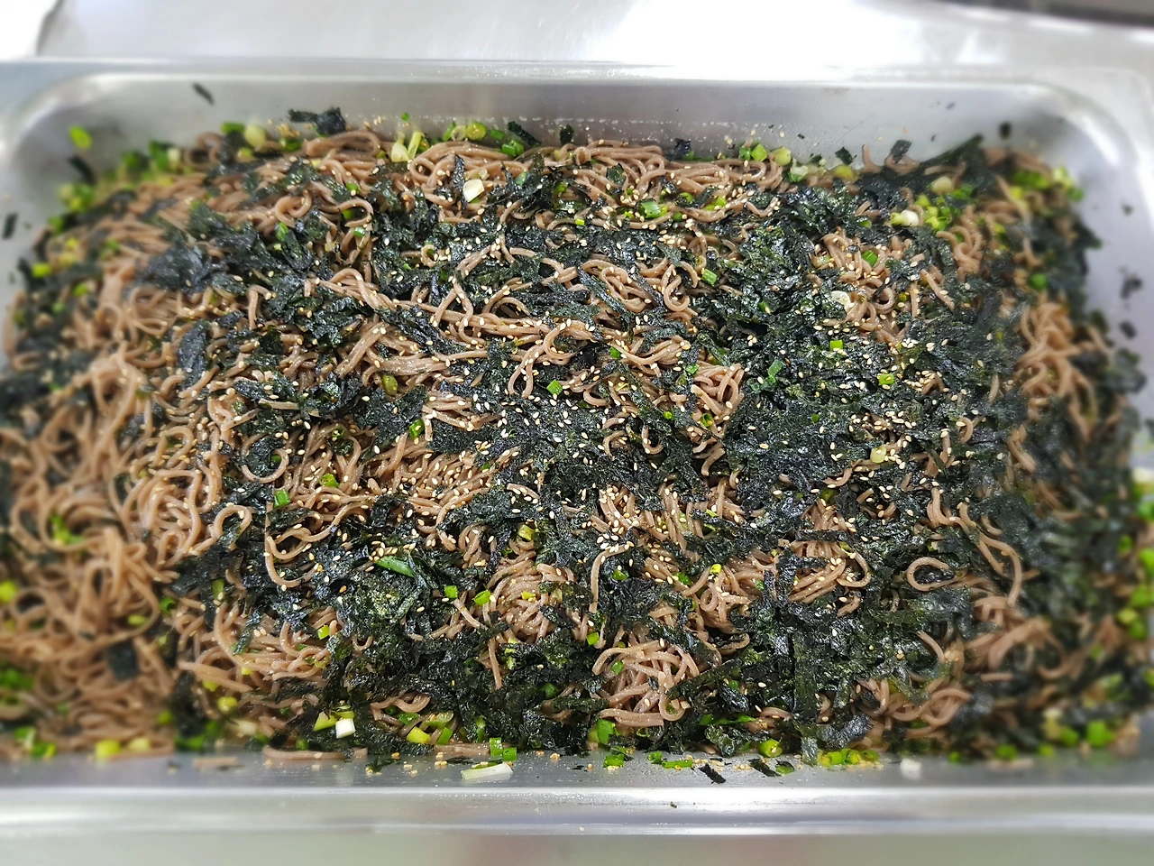 4. 들깨가루, 김가루, 잔파 송송 뿌려서 배식