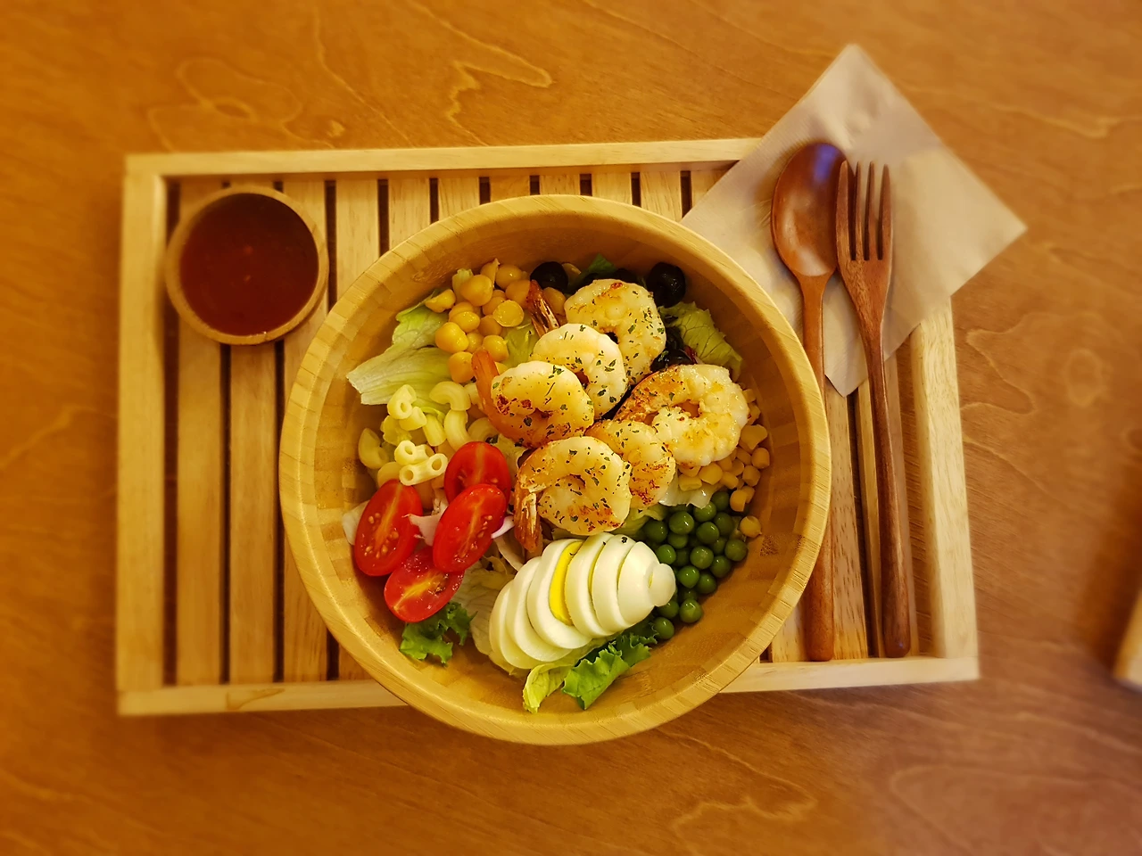 제가 선택한 메뉴는 쉬림프 샐러드 예쁘고 맛있었어요 ~ 기본으로 칠리 소스가 나온듯 했어요.
