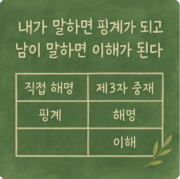 내가 말하면 핑계가 되고, 남이 말하면 이해가 된다.